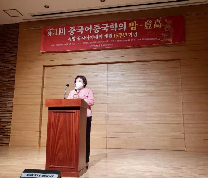 活动伊始,由中国语中国学系系主任최은정(Choi Eun-jung)教授发表讲话,对莅临现场的老师和同学表示热烈的欢迎,鼓励学生在今后的学习道路上再接再厉。随后,中国语中国学系学生会会长发言,对精心准备此次晚会的学生表示感谢。接着,启明大学孔子学院新任中方院长赵菁致辞,赵菁院长表示欢迎同学们关注孔子学院的活动及项目,学好中文,成为中韩友谊的使者和桥梁。