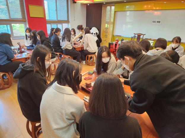 10月14日,韩国启明大学孔子学院成功举办了一场中国传统文化体验活动。本次活动主要面向蔚山女子高中的50余名学生举办。当日,活动分为“茶道体验”和“绘文化扇”两个主题。