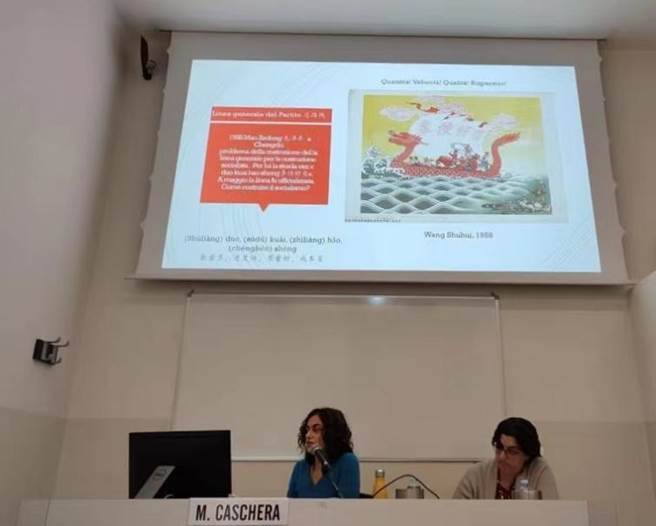 卡斯切拉克(Mattina Caschera)博士分四个部分介绍了中国的漫画艺术。她从中国漫画的发展史入手,对漫画所采用的素材、艺术风格、所受政治影响及其售卖方式等方面做了介绍,并通过实例向大家展示了不同时期中国漫画形式的特征,从侧面呈现了中国的发展变化。本次讲座综合了卡斯切拉克博士在中国历史、文化和艺术等方面的研究,具有独创性和启发性,受到了听众们的热烈欢迎,引起了强烈反响。在讲座提问环节,观众们踊跃提问。