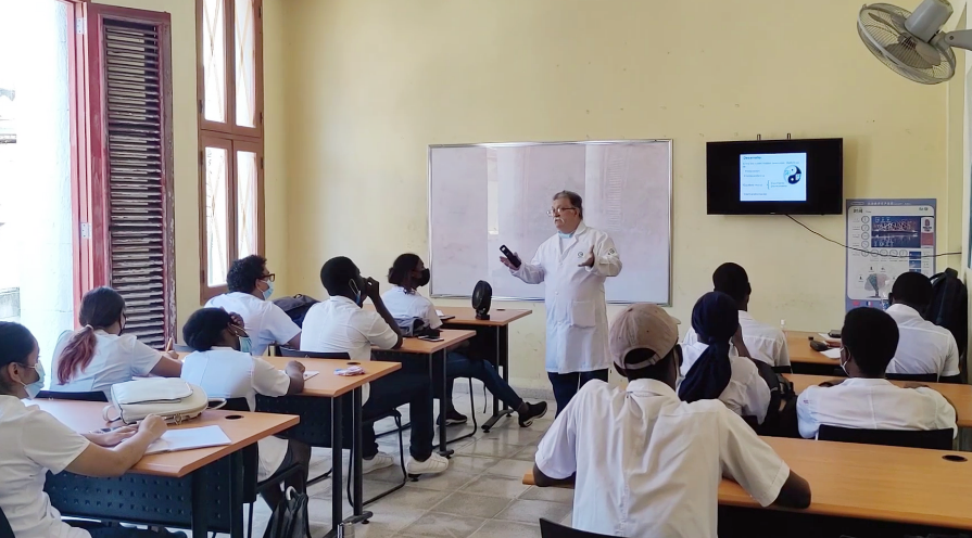 哈瓦那大学孔子学院长期致力于中医的发展,2012年就开设了中医课,由卡洛斯老师的师父——阿曼多教授执教。课程一开放便吸引了众多慕名前来的中医爱好者,学习“道、阴阳、五行、脏腑”等中医理论,学习依照中医原理观察舌苔、号脉等四诊实践,利用天然植物入药、针灸、拔罐、艾灸、推拿疗法等知识。