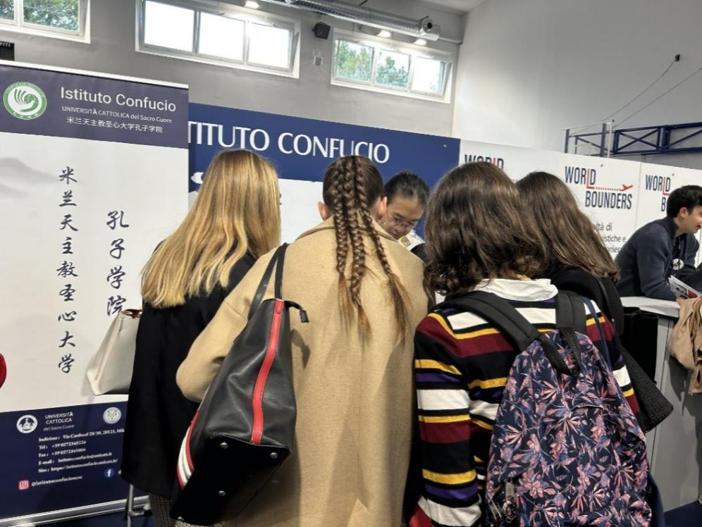 当地时间10月16日至20日,为鼓励学生出国留学、游学,体验不同文化,开拓眼界,米兰天主教圣心大学在各校区举办国际周(International Week)活动,米兰天主教圣心大学孔子学院受邀分别参加了18日-19日布雷西亚(Brescia)校区和米兰哲梅里(Gemelli)校区的活动,宣传了“国际中文教师奖学金”、“夏令营”等项目,吸引了各年级和专业的学生驻足询问。