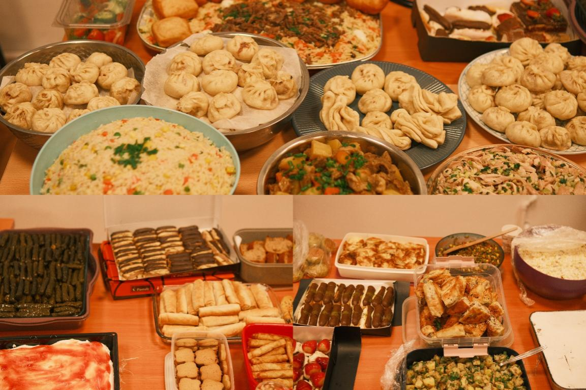 上午十点,中土翻译系的师生们就开始忙碌起来,一边布置活动现场,一边摆放大家带来的食物。孔院活动室内顿时香气四溢,土耳其的各式沙拉、凉菜、饼食、抓饭以及甜品让人应接不暇,中国美食更是让师生们眼前一亮,迫不及待地想大饱口福。