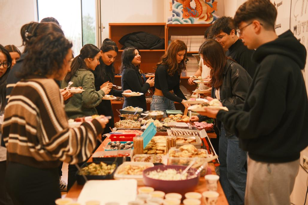 品尝美食的过程中,中国菜肴备受欢迎,土耳其师生对中国菜赞不绝口的同时,也询问起具体的制作方法以及中国的饮食文化。孔院教师们不仅耐心地讲解中国菜品的特点,也对土耳其美食的独特风味称赞有加,并且通过对比中土饮食的异同,与土耳其师生交流分享各自对美食的感受与理解。