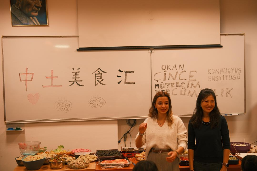 11月27日,土耳其伊斯坦布尔奥坎大学中土翻译系近80名师生齐聚奥坎大学孔子学院活动室,开展了一场别具特色的“中土美食汇”活动。本次活动的餐食由师生们制作或提供,旨在以美食为媒介,增进师生之间的互动与了解,通过品尝中土特色饮食,促进中土文化深度交流。奥坎孔院教师精心制作了具有不同地域特色、包含主食和主菜的中国美食,由土耳其学生用中土双语讲解,让大家在品尝中国美食的同时,了解中国饮食文化。