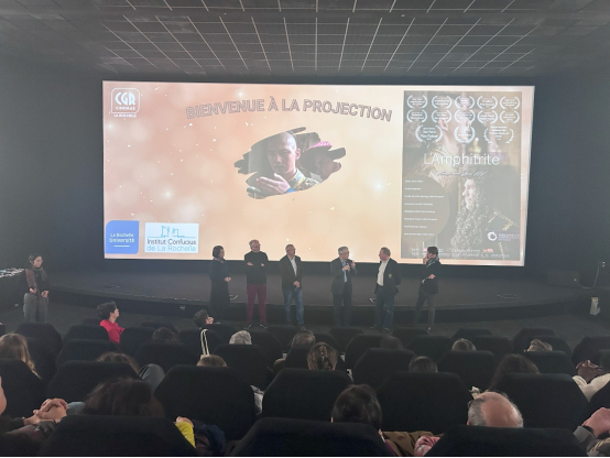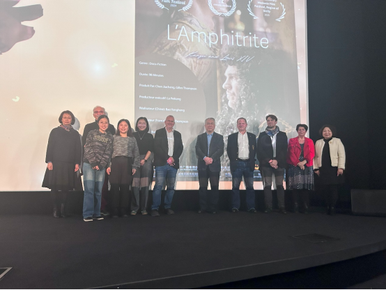 2024年12月4日晚,为庆祝中法建交六十周年特别制作的中法合拍纪录电影《康熙与路易十四》在拉罗谢尔CGR des Minimes影城举行专场放映活动。此次活动由拉罗谢尔孔子学院和拉罗谢尔大学共同主办,吸引了众多拉罗谢尔市民与大学生前来观影,共同见证这一段跨越时空的文明交流佳话。特别邀请的嘉宾有《康熙与路易十四》主创团队的总监制喇培康、法方导演吉勒-汤普森(Gilles Thompsons)和饰演路易十四的演员特里斯坦-罗宾(Tristan Robin)以及影片的学术顾问、拉罗谢尔大学副教授白志敏与观众见面。