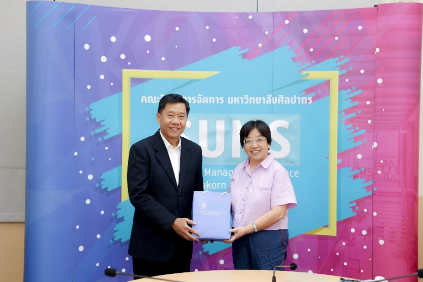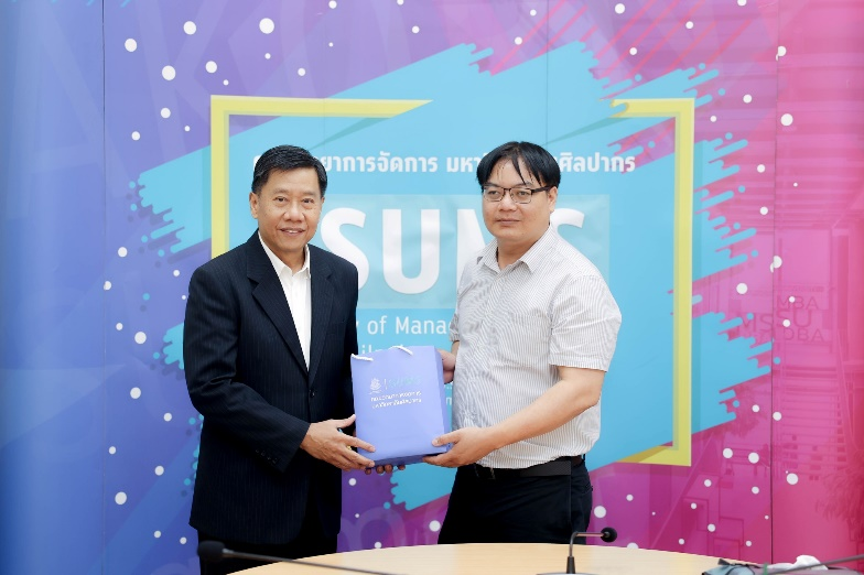 随后,泰国艺术大学经济管理学院院长与玛希隆中泰方孔院院长会面,双方就深化合作、扩大交流规模等议题进行了深入探讨,并互赠礼品,以表友谊长存。经济管理学院院长表示,艺术大学高度重视与玛希隆大学孔院、北京语言大学的合作,希望未来能提供更多奖学金名额和短期交流机会,尤其是针对本硕层次的优秀学生。
