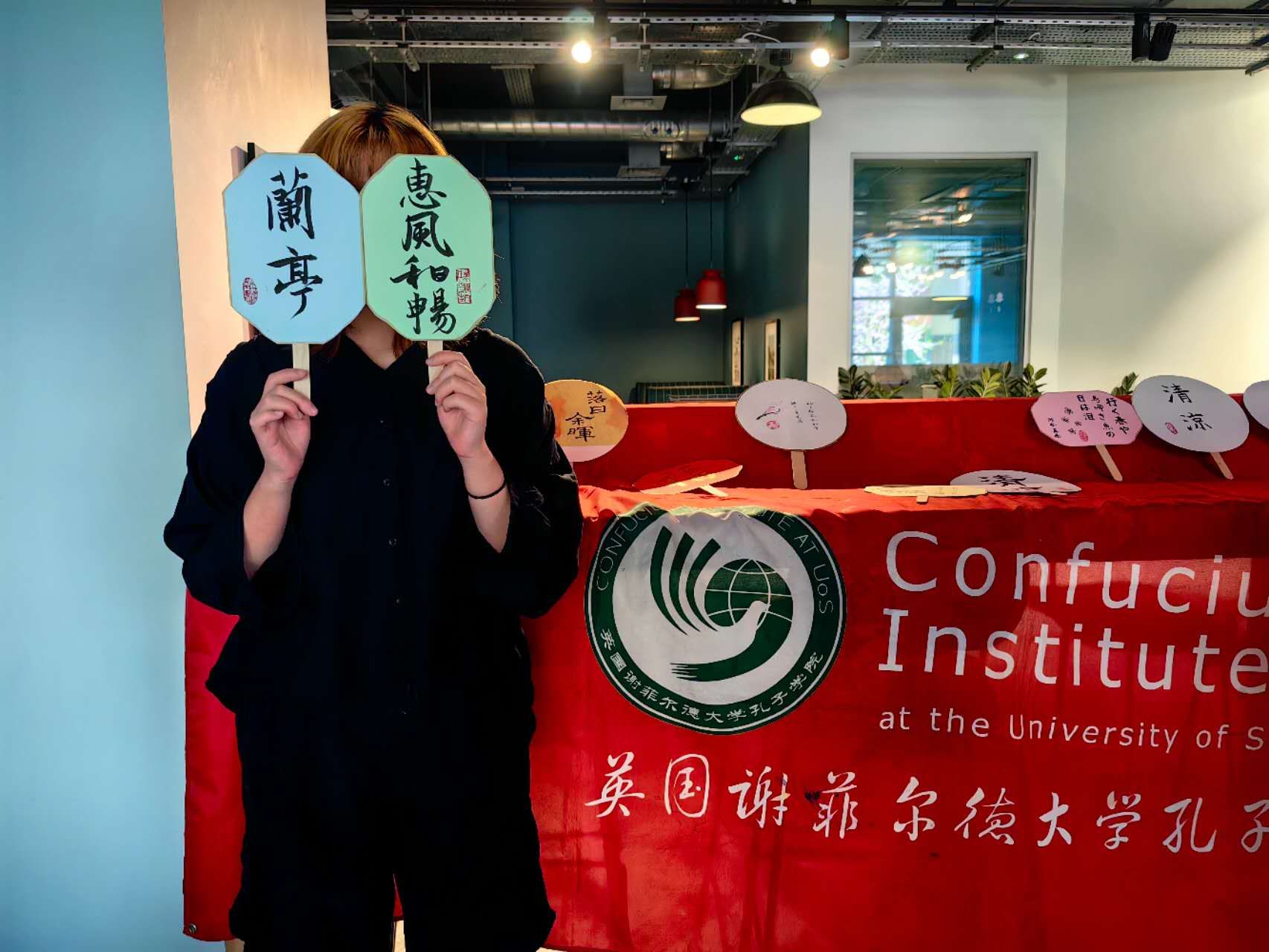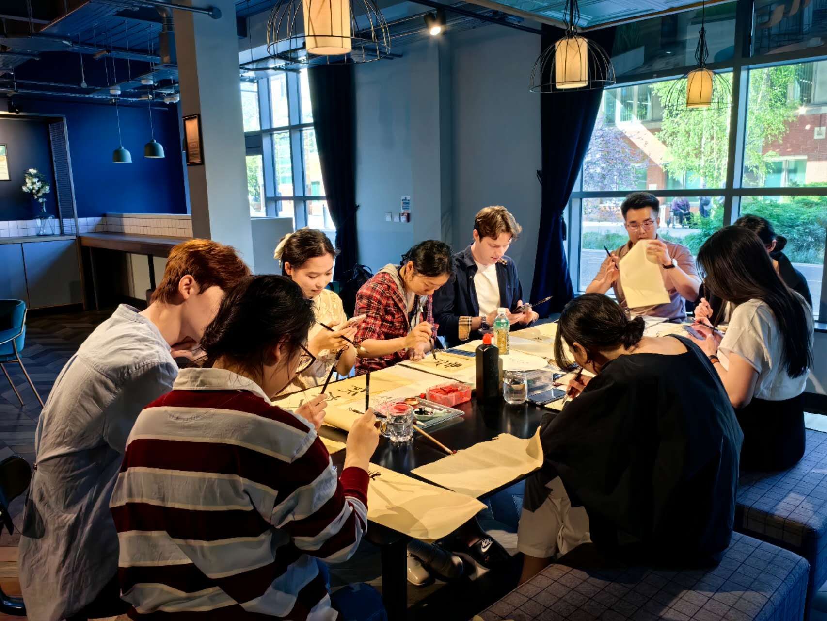 北语新闻网5月7日电(通讯员 苏向丽 摄影 李琦 苏向丽)为庆祝“国际中文日”,谢菲尔德大学孔子学院和Prestige Accommodation合作开展中国文化活动。5月1日劳动节之际,王咏院长与苏向丽老师走进Crown House国际社区,与来自不同国家的中外学生共同体验中国书法、绘画及古诗鉴赏,以“书香、墨香话中文”为主题,展开了一场别开生面的文化对话。
