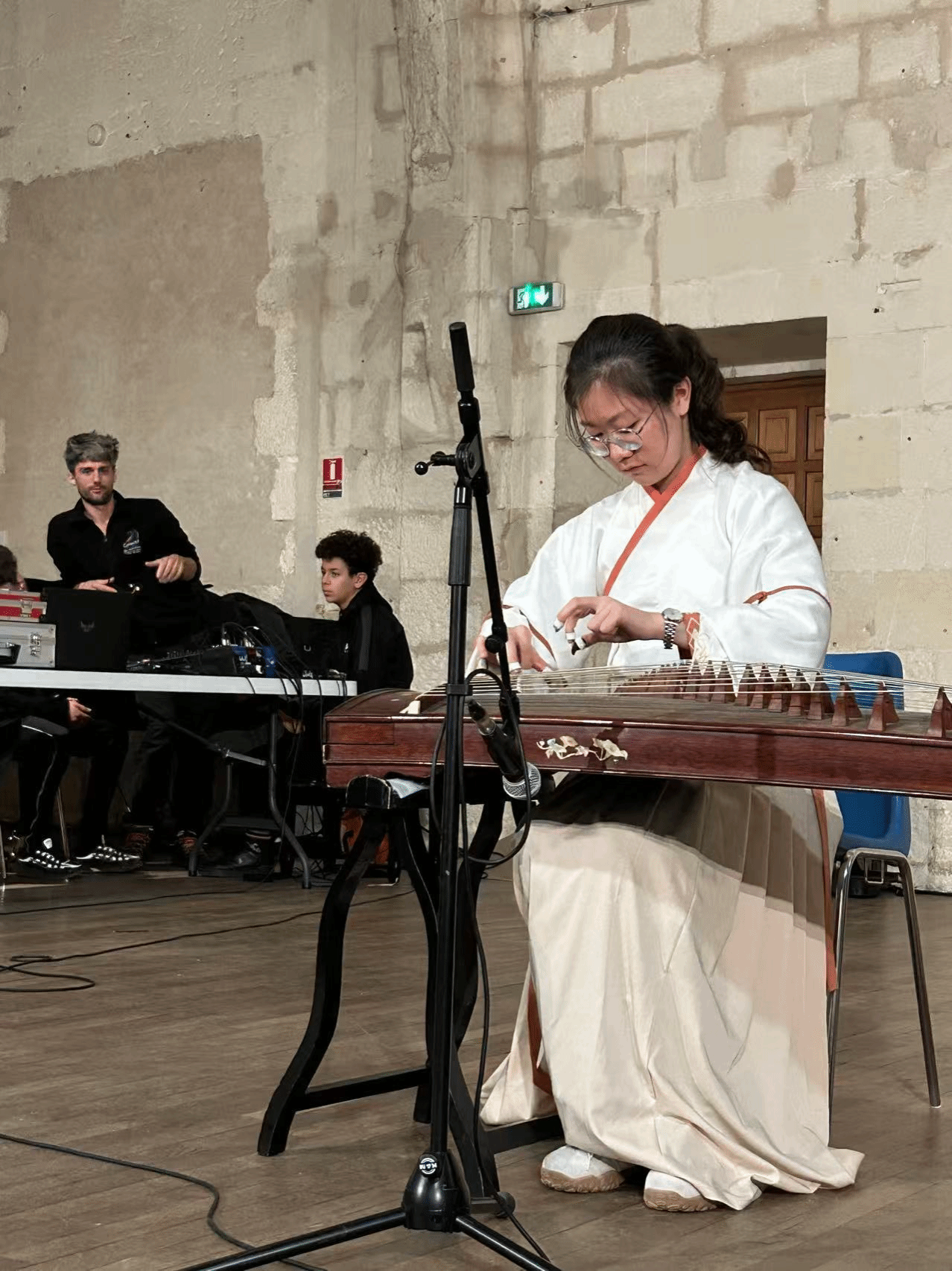 孔院还准备了舞蹈和古筝独奏,为活动增添了浓浓的艺术气息。舞者衣袂轻扬,勾勒出柔美典雅的东方意境;古筝音色清亮悠远,将现场氛围轻轻引入如水月夜。演出在观众中反响热烈,赢得阵阵掌声。