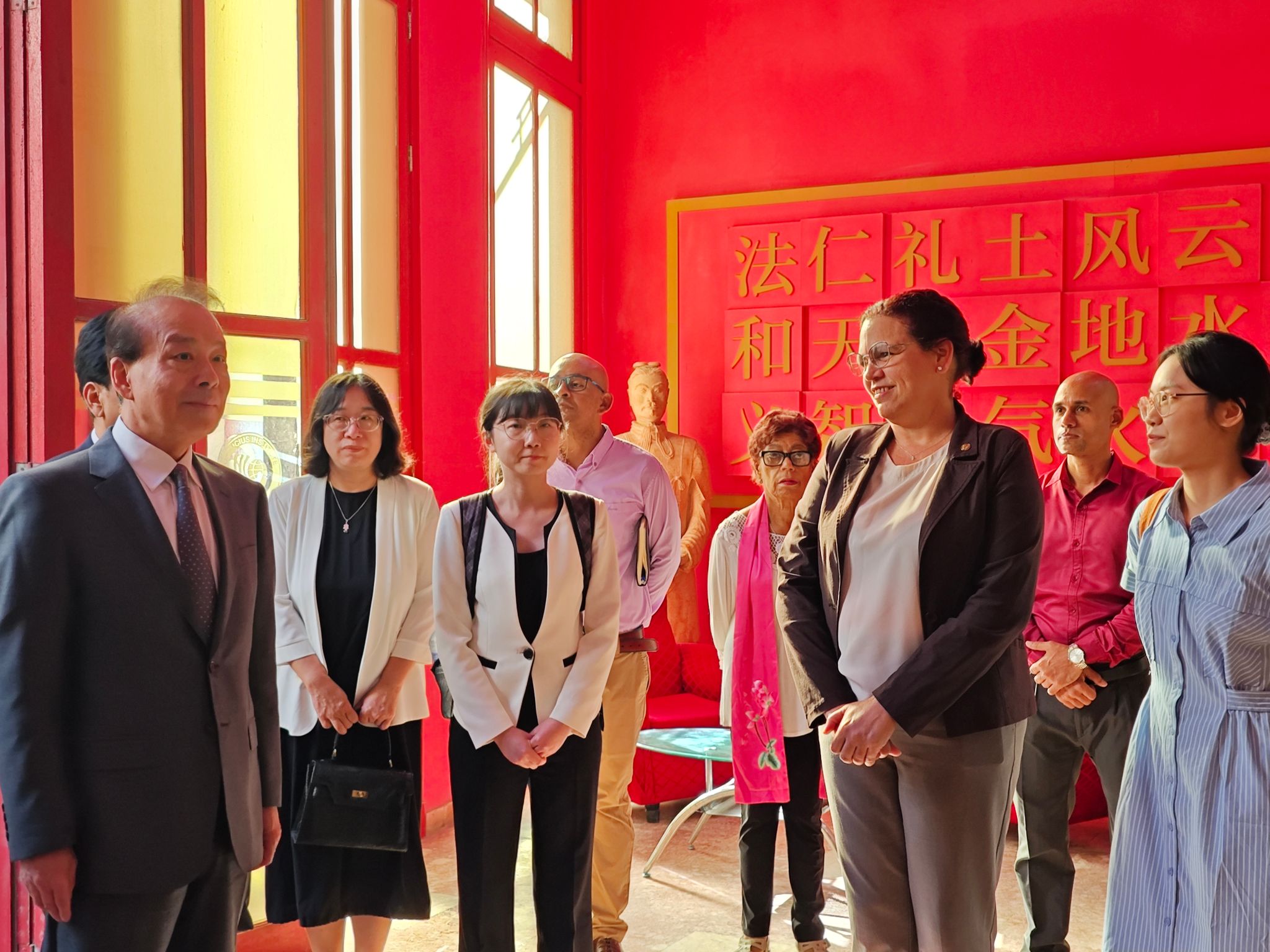 北语新闻网12月19日电(通讯员 翟淑芳 摄影 皮曾梅)12月14日,中国全国政协外事委员会主任何平率代表团访问古巴哈瓦那大学孔子学院,深入了解孔院教学成果与文化传播情况。中国驻古巴使馆韩立昕参赞、教育专员那日飒全程陪同此次访问,哈瓦那大学第一副校长玛丽安·埃尔南德斯·科利纳(Marian Hernández Colina)出席活动并发表欢迎辞。