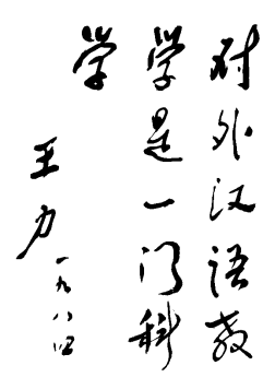 1984年王力先生关于“对外汉语教学是一门科学”的题词