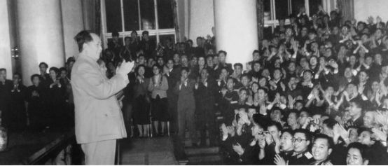 1957年11月17日,毛主席在莫斯科大学大礼堂会见全体中国学生和部分苏联学生