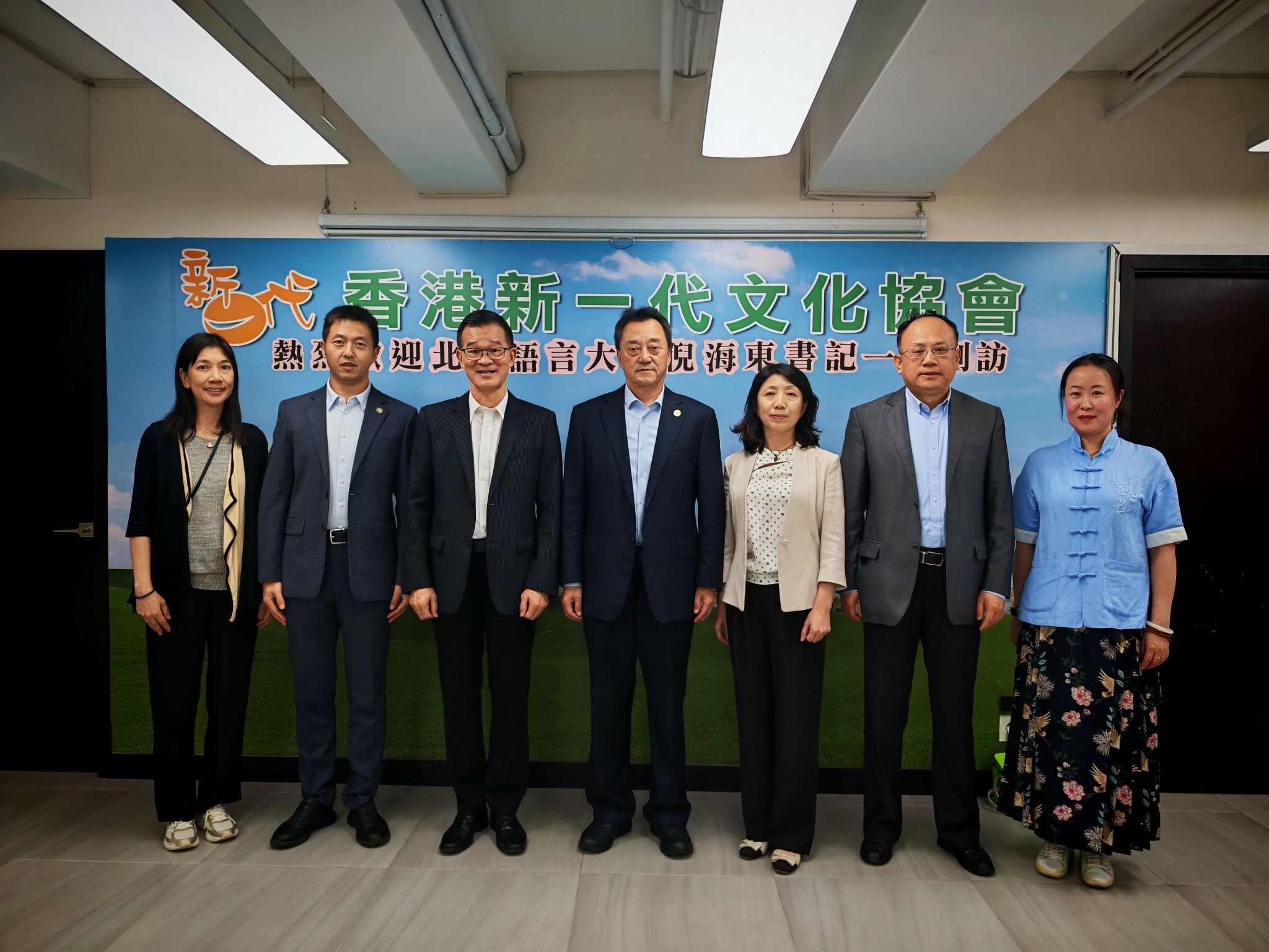 在香港新一代文化协会,代表团与协会总干事苏祉祺、秘书长蔡海璇座谈交流。双方共同回顾了自1994年以来携手打造的“我的祖国-京港澳学生交流营”品牌项目的丰硕成果与宝贵经验,苏祉祺先生特别提到,近两年来,由协会组织的香港大中学生升旗队访京团在我校受到热情接待,并与北京语言大学国旗护卫队开展的深度交流互动,已成为两地青年增进了解、建立友谊的精彩篇章。