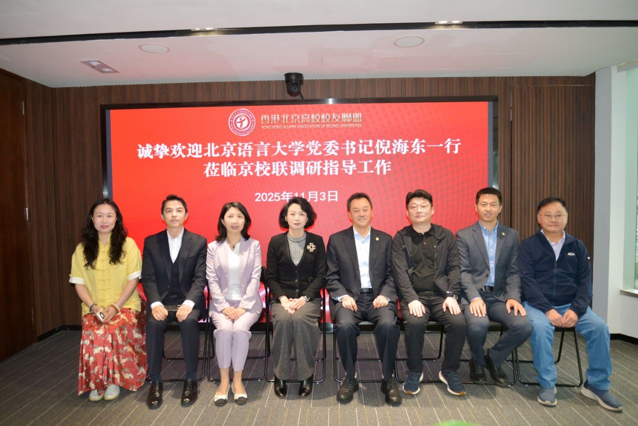在香港北京高校校友联盟,倪海东书记一行与京校联会长李然、北京市委人才工作领导小组驻港澳人才联络处副主任李韬、京校联副会长刘珉宏、京校联席位副会长李康和、京校联会长助理周丽等会谈。李然会长详细介绍了京校联自2022年创立以来,在服务香港社会、凝聚校友力量方面所开展的卓有成效的工作,并表示将大力支持北京语言大学香港校友会的工作。李然会长还在11月2日傍晚出席了我校香港地区校友之家的成立大会并致辞,为校友之家的启航送上祝福。