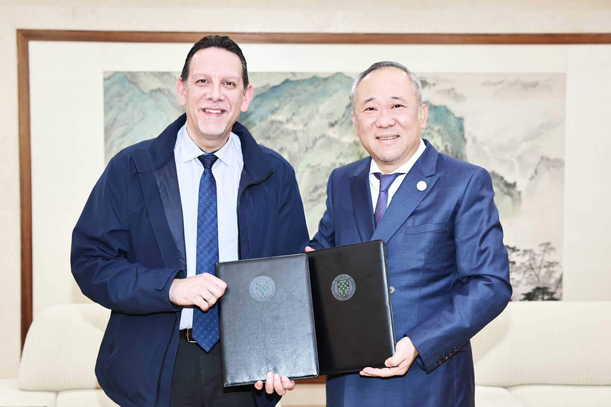 随后,段鹏校长与弗洛罗斯校长签署了学术合作备忘录。双方围绕汉学中心建设、联合人才培养、师资互派、学科共建、文化交流等具体合作事项达成高度共识,一致同意以此次签署为契机,加快推进各项合作举措落地实施,深化师资互访与学术交流,共同搭建中希教育文化交流的优质平台。