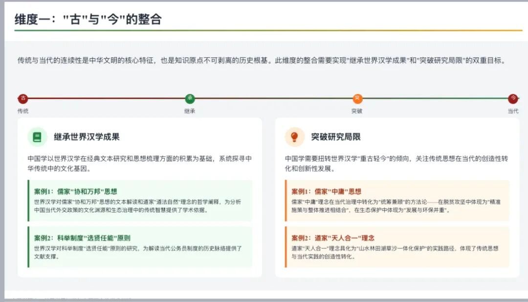 传统与当代的连续性是中国文明的核心特质,也是知识原点不可脱离的历史根基。这一维度的融通需实现“承接汉学成果”与“突破研究局限”的双重目标: