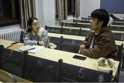 参与到此次活动中的还有这样一位同学,她是来自25AI翻译实验班(我校和北京科技大学联合学士学位培养项目)的杜雯爽同学。她在了解到这个活动后每次都会步行二十分钟来到北语,虚心向学长求教。她分享到:通过此次活动,她渐渐拨开了学习的迷雾,找到了努力的方向。