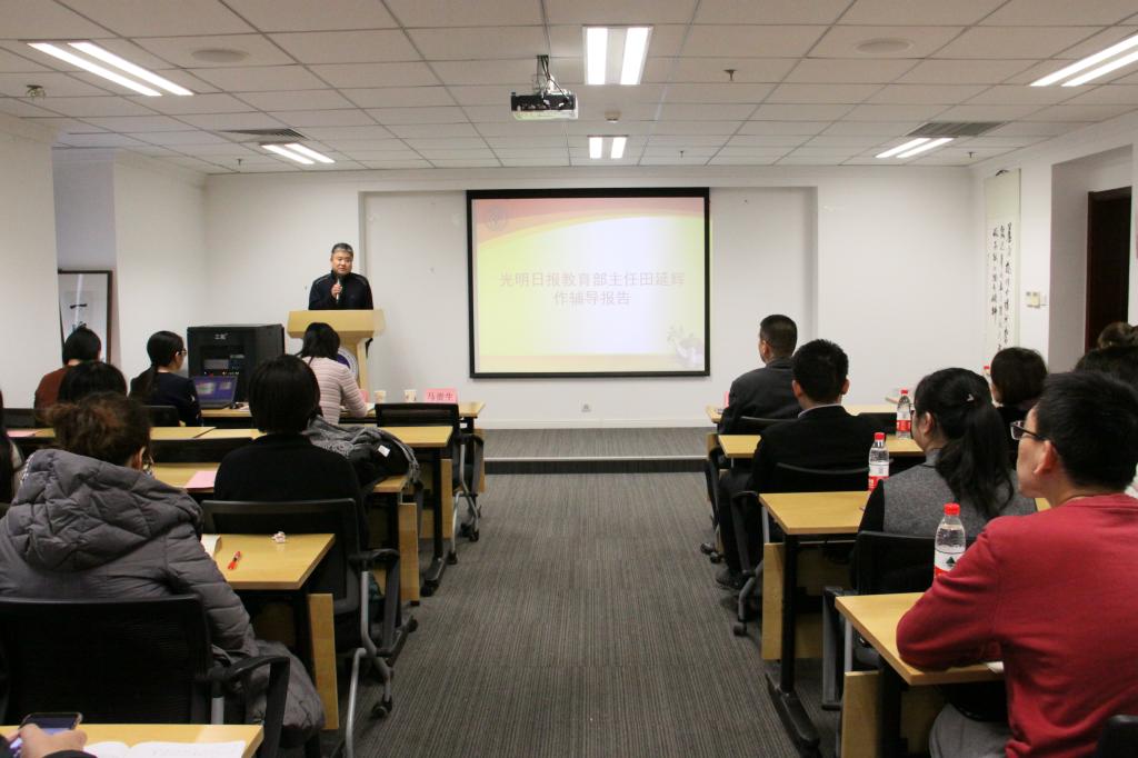 1月9日下午,北语2018年通讯员培训表彰会暨微信公众号联盟成立会在综合楼1211召开。党委副书记马贵生出席会议并发表讲话,光明日报教育部主任田延辉作培训报告。光明日报记者邓晖、教师工作部副部长赵璞,以及来自全校各教学科研单位、职能部门的通讯员、网评员和微信公众号负责人50余人参加了会议。党委宣传部常务副部长展明锋主持会议。