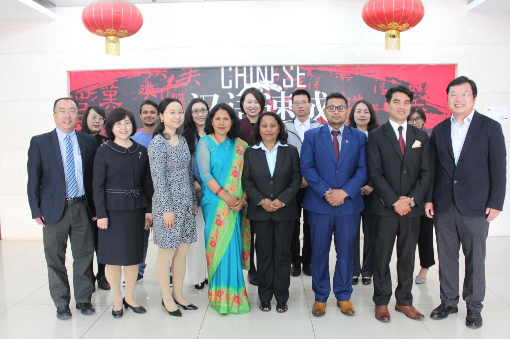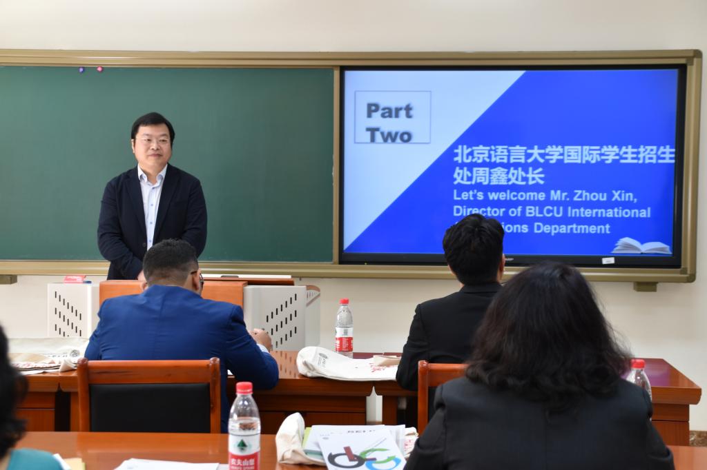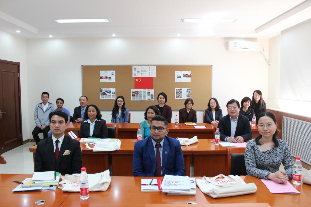 周鑫副处长首先代表北京语言大学对远道而来的四位尼泊尔外交官表示热烈欢迎,对外交部给予北语的信任和支持表示感谢,并向大家介绍了北语多元文化交融的特色优势以及目前在北语留学的尼泊尔学生的情况,同时盛情邀请外交官们参加即将举办的北语“世界文化节”。