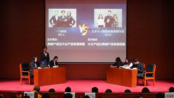 经过激烈角逐,最终,由李昌峻、刘涵微、袁敏组成的法兰西商院队荣获本次营销大赛的一等奖;由李悦、朱兴鹂、严子潇组成的仙女靠飞不用腿队和由郝钰兆、李苏蓉、张潇尹组成的北京市火锅协会首席顾问团队获得二等奖;由吴思怡、柳婷、陈嘉楠组成的东南商会队,由方苏、潘震铭、肖龚子昱组成的苏铭昱代表队和由宋天瑜、孙乔伊、刘婧组成的一支鲸鱼队获得本次比赛的三等奖。