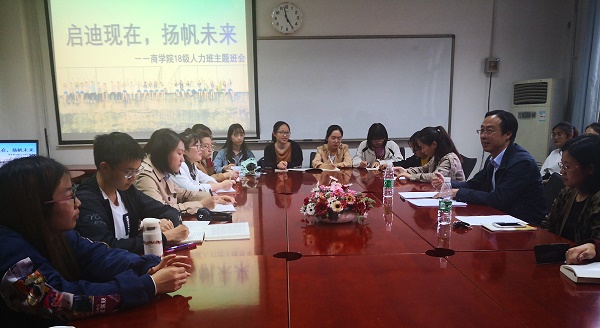 黄益方副校长深入联系班级,与18级人力资源管理班同学面对面交流,切实解决了大家在思想、学习、职业发展等方面存在的困惑和问题。通过此次班会,人力班的同学们对专业学习更具信心和热情,同学们表示一定会加倍努力学习,将管理理念更好地运用到人生的每一环节,把握现在,赢得未来。