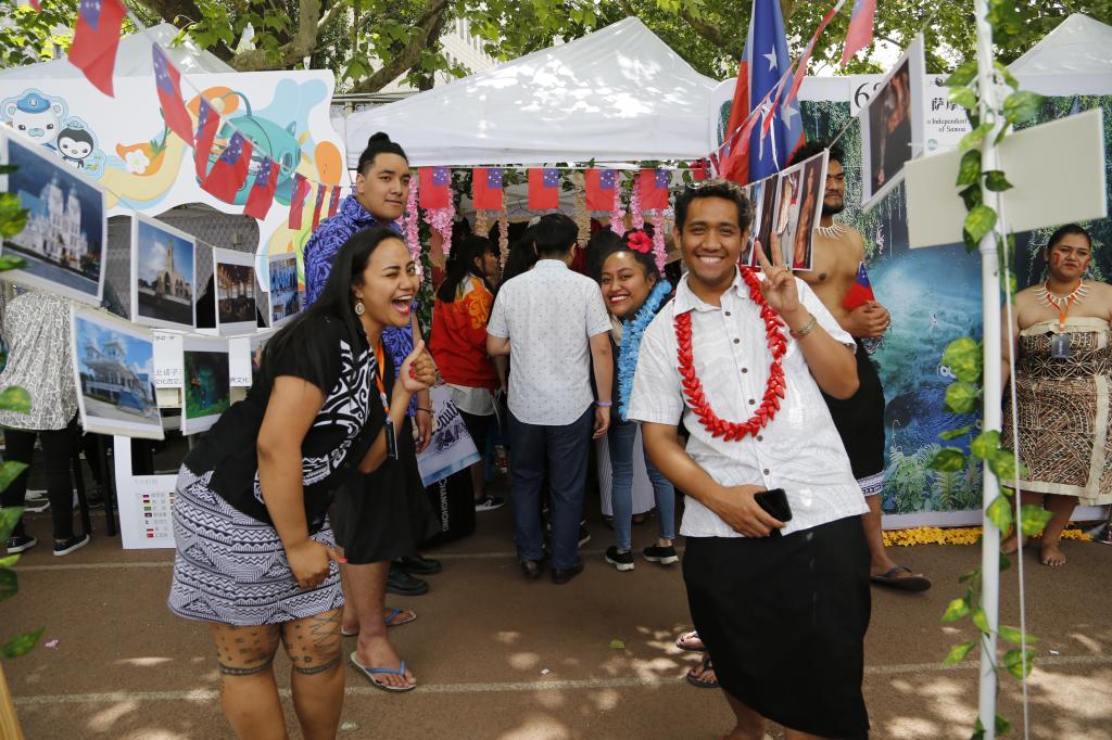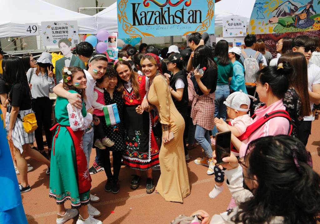 各国留学生们在台上尽情演绎的同时,各国展棚也创意无限,精彩纷呈,吸引着大家的视线。亚洲展区前,塔吉克斯坦留学生跳起了轻快灵巧的传统舞蹈,活泼的节奏、明亮的服饰,极具异域色彩。泰国留学生身着民族服饰,向中外观众介绍本国文化的特色。一进入欧洲展区,浪漫的气息便扑面而来,意大利小伙子用自制的相框与观众合影,丹麦姑娘们以有奖问答的形式向大家介绍丹麦,吸引不少人前来一探究竟。在美洲和大洋洲,热情和笑声不时袭来,巴西小伙子穿上了球衣,手捧冠军奖杯频频与观众合影。加拿大、美国留学生为观众们准备了地道的本国美食,令人垂涎欲滴,不舍离去。非洲展区带来的是自由、放松之感,同时也不乏给人美的享受。热情的民族舞蹈,精致的手工制品,特色鲜明的服装都将他们的文化传递给了每一位在场的观众。