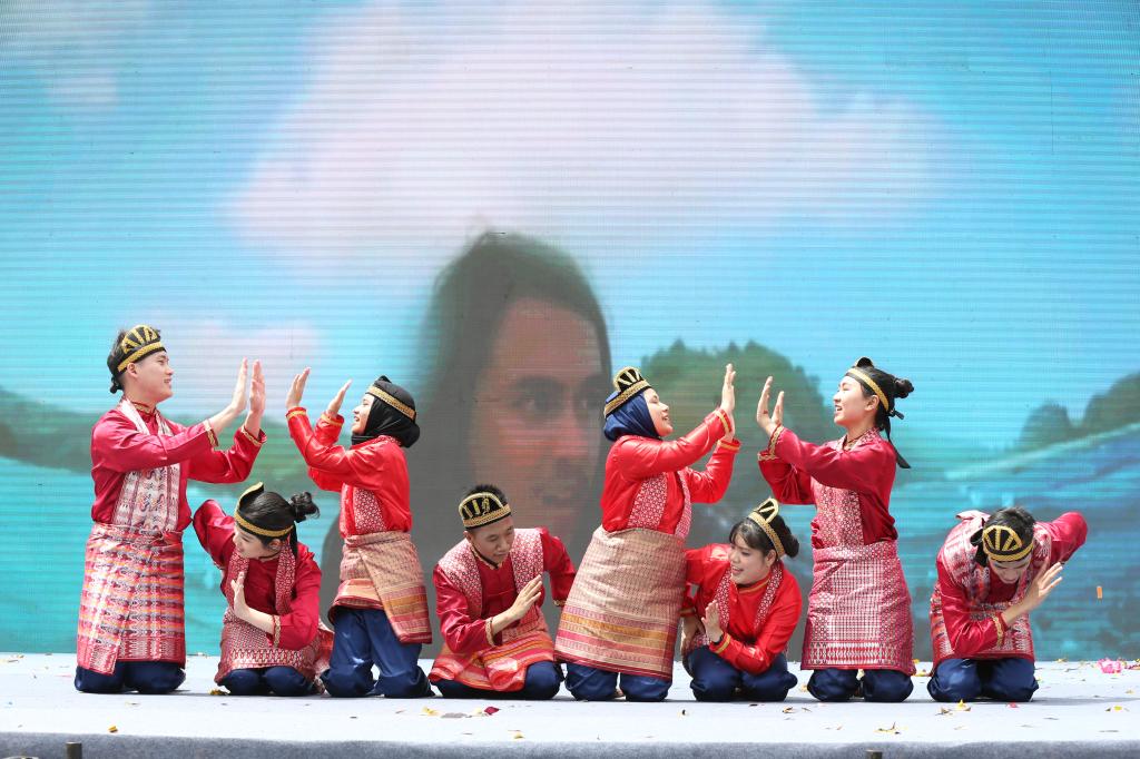 在5月15日“亚洲文化嘉年华”大型演出中,来自泰国、印度尼西亚、越南、马来西亚、巴基斯坦、柬埔寨、尼泊尔、孟加拉国等8国的北语留学生,身着本国传统服装,与我国戏曲界史依弘、袁慧琴、杜镇杰、康万生等艺术家共同完成戏曲节目《盛世梨园》,留学生们表演了《说唱脸谱》环节,展现外国学子对中国国粹的喜爱、亚洲文明的共荣。