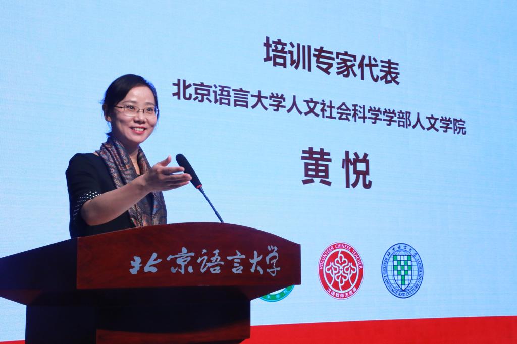 培训专家代表北京语言大学人文社会科学学部人文学院黄悦副教授给志愿者们分享了自己在海外工作的经历。她指出越是在文化反差大的地方,越能体会到个人和祖国的休戚相关,命运与共。她送给志愿者们三句话来帮助志愿者们实现更好的蜕变:一是既要有文化自信,更要有对话意识;二是在对话时,看到历史,更要看到当下;三是珍惜机会,努力成长。