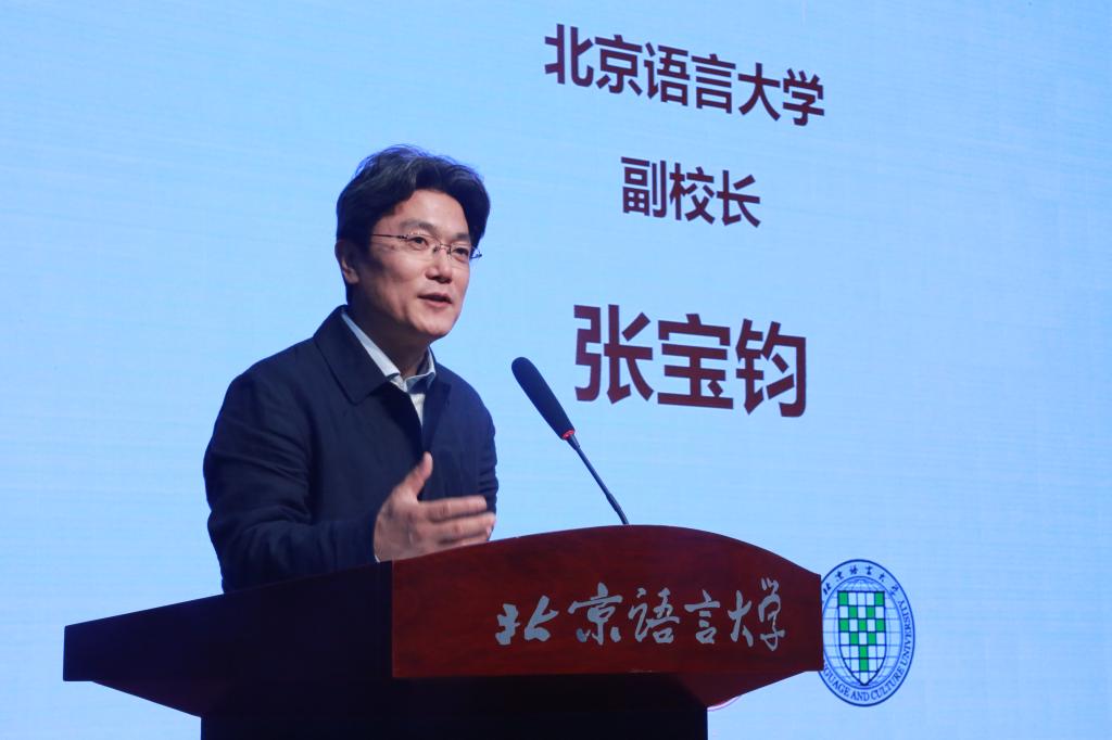 仪式上,张宝钧副校长代表北京语言大学对志愿者们的到来表示热烈欢迎,他感谢孔子学院总部对北语的支持和信任,并向长期奋斗在培训岗位的专家和中青年骨干教师致敬。张宝钧副校长表示青年志愿者们将自己的人生发展与国家命运紧密结合,责任重大,任务艰巨,使命光荣。北京语言大学将全力支持此次培训,为帮助学员们更好地踏上征程做好充分准备。他对志愿者们提出三点希望:首先,胸怀祖国,坚定信念。他表示文明因交流而多彩,文明因互鉴而丰富。国家主席习近平在亚洲文明对话大会中指出,各种文明本没有冲突,只是要有欣赏所有文明之美的眼睛。人类只有肤色、语言之别,文明只有姹紫嫣红之别,但绝无高低优劣之分。我们应该秉持平等和尊重,加深对自身文明和其他文明差异性的认知。他对志愿者们做好文化互鉴的桥梁、文明交流的使者寄予殷切希望;其次,他希望志愿者们珍惜学习机会,夯实专业基础。他谈到,北语是HSK考试、对外汉语教育事业诞生的摇篮,在汉语国际教育领域一代代北语人精耕细作,薪火相传。他希望大家在此领略名师风采,感悟中外文明智慧,未来为中外人民友谊发展贡献力量; 第三,他希望志愿者们在赴海外任教过程中做到严守纪律、爱岗敬业,亲身投入到中外文明交流的伟大事业中,成长为胸怀祖国,具有国际视野和国际思维的栋梁之才。