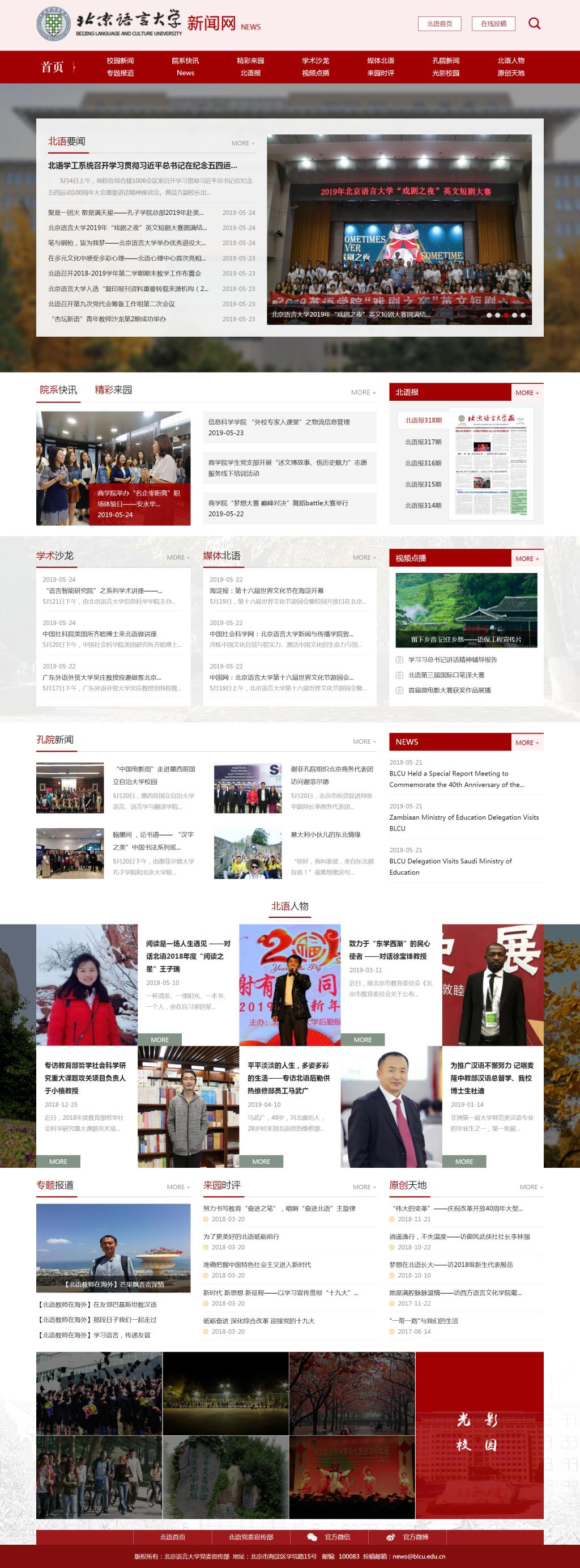 北语新闻网改版秉承“内铸和谐氛围,联系全校师生;外塑北语形象,沟通学校内外”的宗旨,彰显北语特色和门户特质。全新改版的北语新闻网从进一步服务中心工作和师生信息需求出发,强化新闻发布、文化建设、信息传播和视觉传达等功能,强调交互体验设计及视觉设计,着力提升用户浏览体验。
