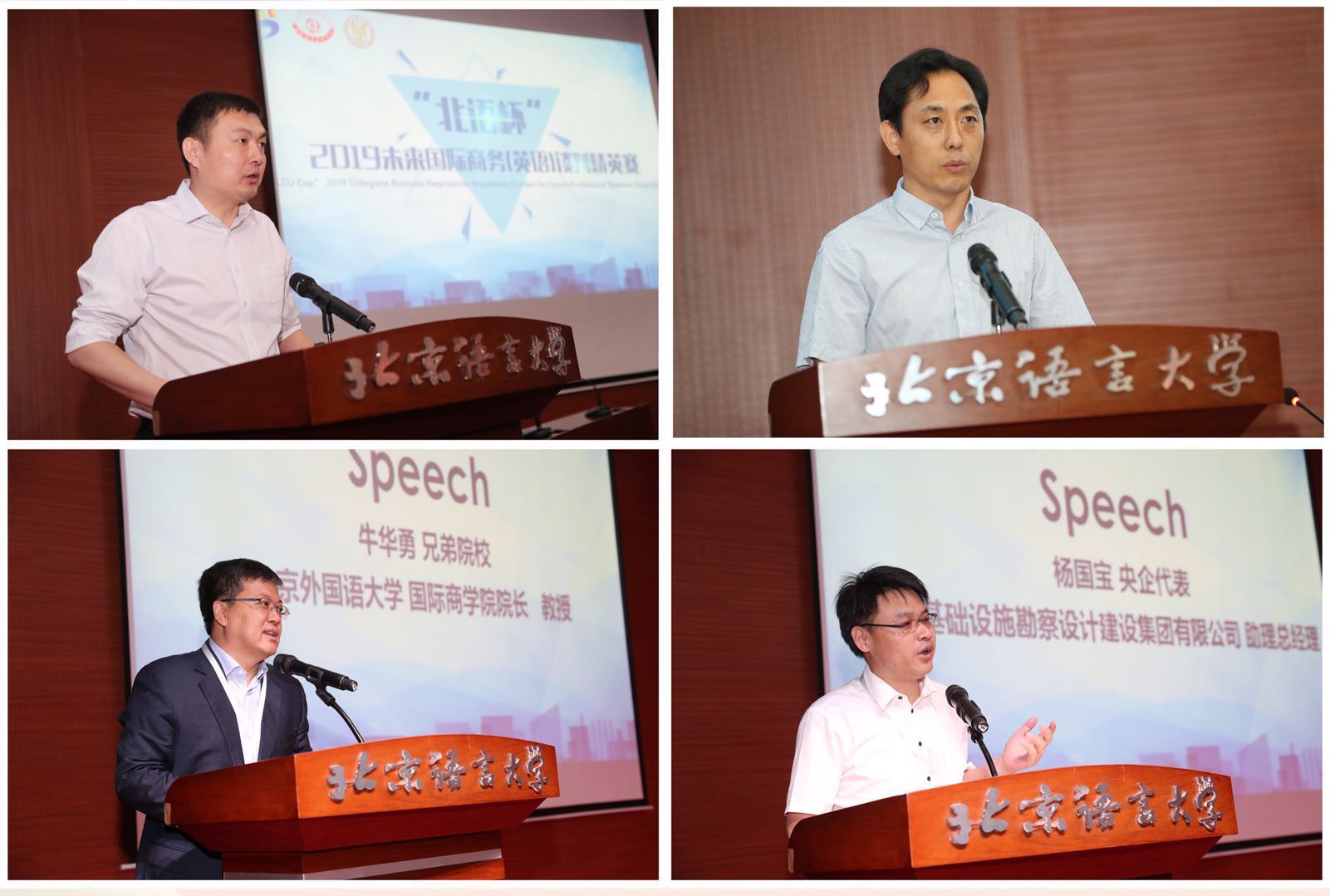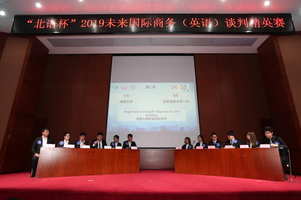 由中国管理现代化研究会国际商务谈判专业委员会主办、北京语言大学商学院承办的“北语杯”2019未来国际商务(英语)谈判精英赛于2019年5月25日上午在北京语言大学逸夫报告厅正式开幕。历经九场模拟谈判比赛、两场冠亚季军争夺战以及专家“头脑风暴”思辨后,于2019年5月26日上午圆满落下帷幕。来自国内外高校的队伍凭借专业的商务礼仪、灵活的谈判技巧和流利的英语表达给评委们留下了深刻印象,为学校赢得荣誉的同时也使自身能力得到了极大的锻炼和提升。