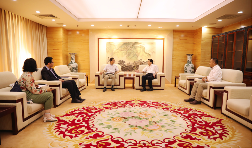 刘利校长向郑浩副局长介绍了我校服务国家战略,加强汉学家翻译人才培养以及推动中国文化“走出去”的工作成果。郑浩副局长对学校翻译人才培养和文化对外翻译传播方面的工作给予了高度评价,并结合学校特色和现有成果对北语人才培育、区域国别合作、对外翻译传播工作等方面提出了意见和建议。