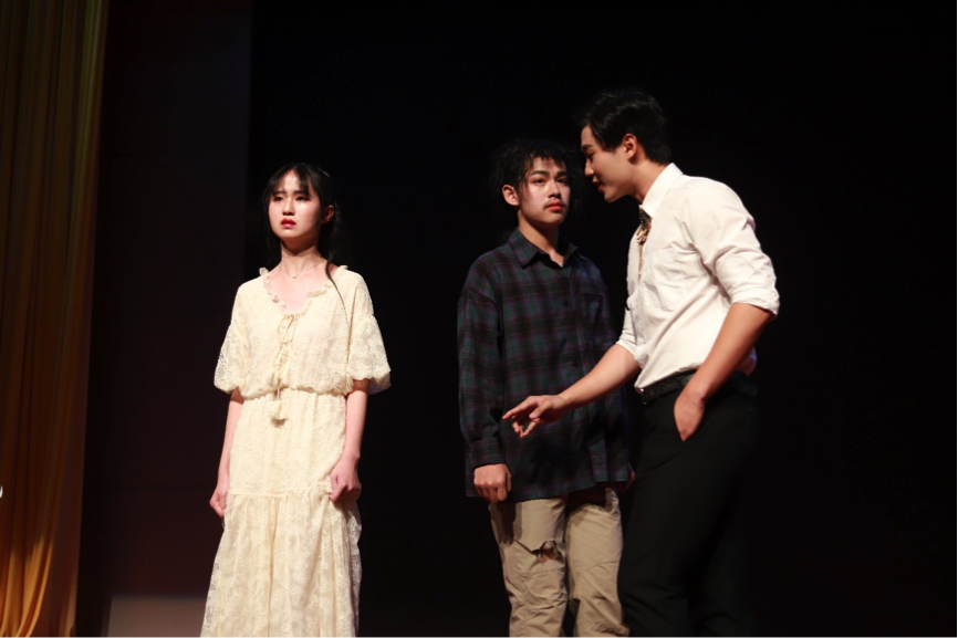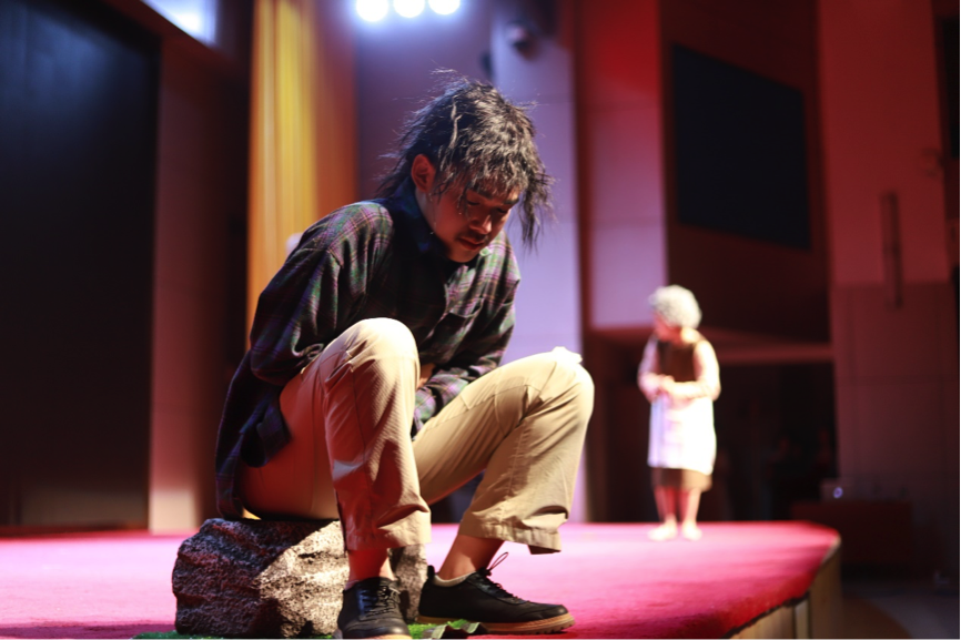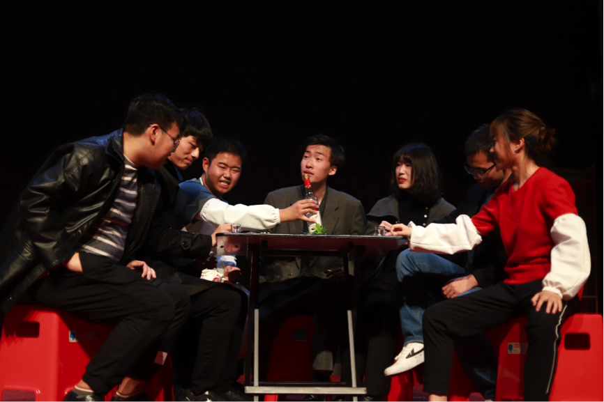 最后带来表演的是原创剧目《一路上》。故事中的艾奇在流浪的路上遇到了形形色色的人,他的经历改变了他的思想。演员们投入的表演让我们看到了一个浪漫主义者从追求理想到被现实打压最终悲凉死去的过程。整个剧目体现了对爱情、金钱与物质的反思。他们让角色生动地展现在舞台上,出色的表演博得了观众们热烈的掌声。