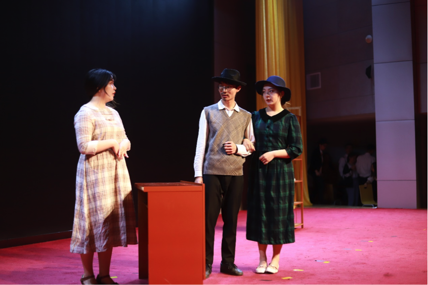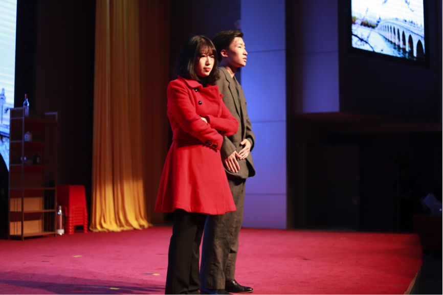 接下来《二马》剧组为我们讲述了一个跨越国界的爱情故事。开场扮演英国人的四位演员点明了故事的大背景,马家父子与温都母女之间的感情发展在这种复杂的背景下产生了许多矛盾,四位主演将不同文化背景下的人的性格特征把握得很到位。台上的爱情故事虽以悲剧结尾,却让我们对不同文化间的冲撞有了更多的思考。