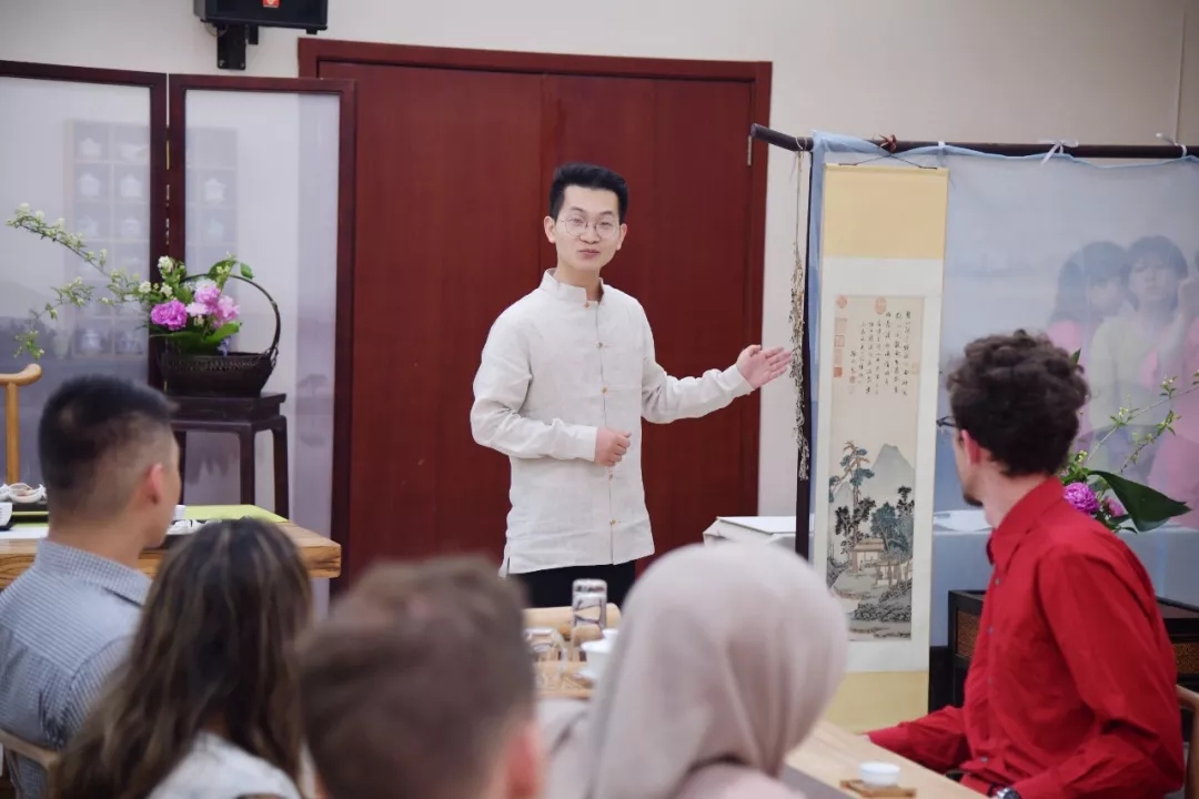汉语速成学院文化体验基地是茶文化系列课程的先行者和实践者,自2009年起,先后为近万名来华留学生、海外进修教师、外国使节以及赴海外汉语教学志愿者等开设中国茶文化课程和茶文化教学体验活动,积极弘扬中国优秀传统文化。特别是去年4月,创建了 “北语茶学堂”,更是赢得了广泛赞誉。国之交在于民相亲,民相亲在于心相通,心相通就是文化的相通,文化的交流、文明的互鉴。本次活动深入践行文化相通理念,讲好“中国茶”的故事,努力让中国智慧成为全世界共享的价值财富,为“一带一路”建设贡献应有之力。