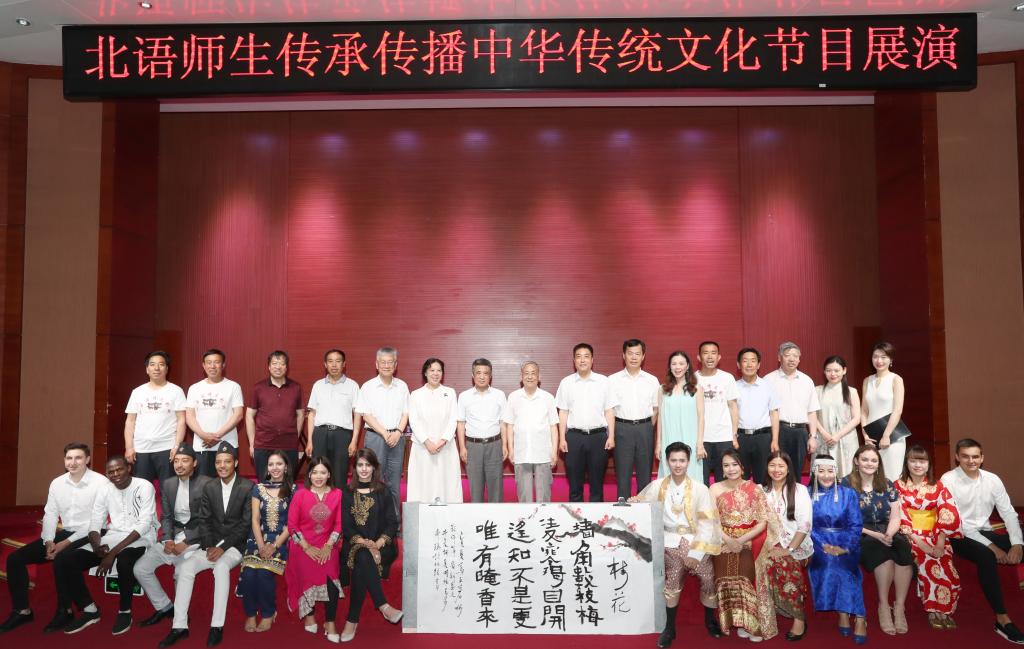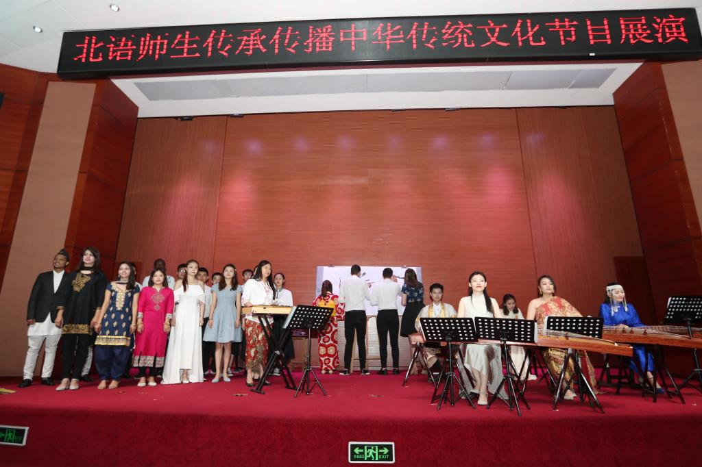 随后,北语师生传承传播中华优秀传统文化节目展演精彩上演。中外师生为现场观众带来了他们精心准备的歌曲《粉墨春秋》、民乐《夜深沉》以及诗书乐画《梅花》等节目,为大家呈现了一场多元文化交融的艺术盛宴,赢得了观众的阵阵掌声。为了让留学生在学习中国语言的同时,通过语言的桥梁能够了解、学习、感悟中国传统艺术,北语为全校学生尤其是留学生开设了多达到22门中国传统文化课程,其中艺术赏析课程6门,艺术技能课程16门,包括书画、器乐、戏曲、民歌四大专业,已有近80个国家的近2000名中外学生学习了中国传统艺术。