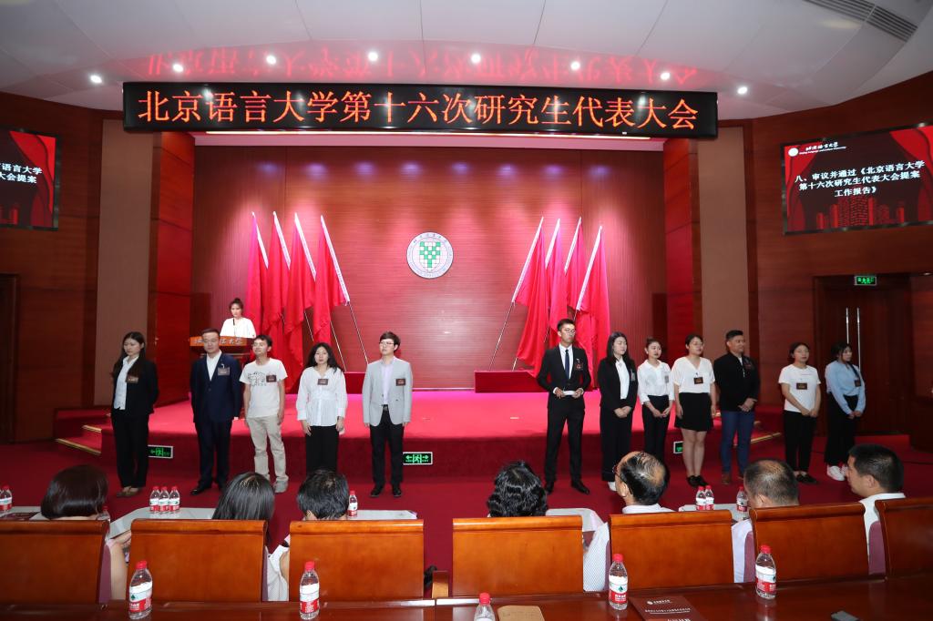 第十六次研究生代表大会筹备组向大会作了《关于修改<北京语言大学研究生会章程>的说明》,大会审议并通过了《北京语言大学研究生会章程》《北京语言大学第十五届研究生会工作报告》和《北京语言大学第十六次研究生代表大会提案工作报告》。大会投票选举产生了新一届校研究生会执行委员。