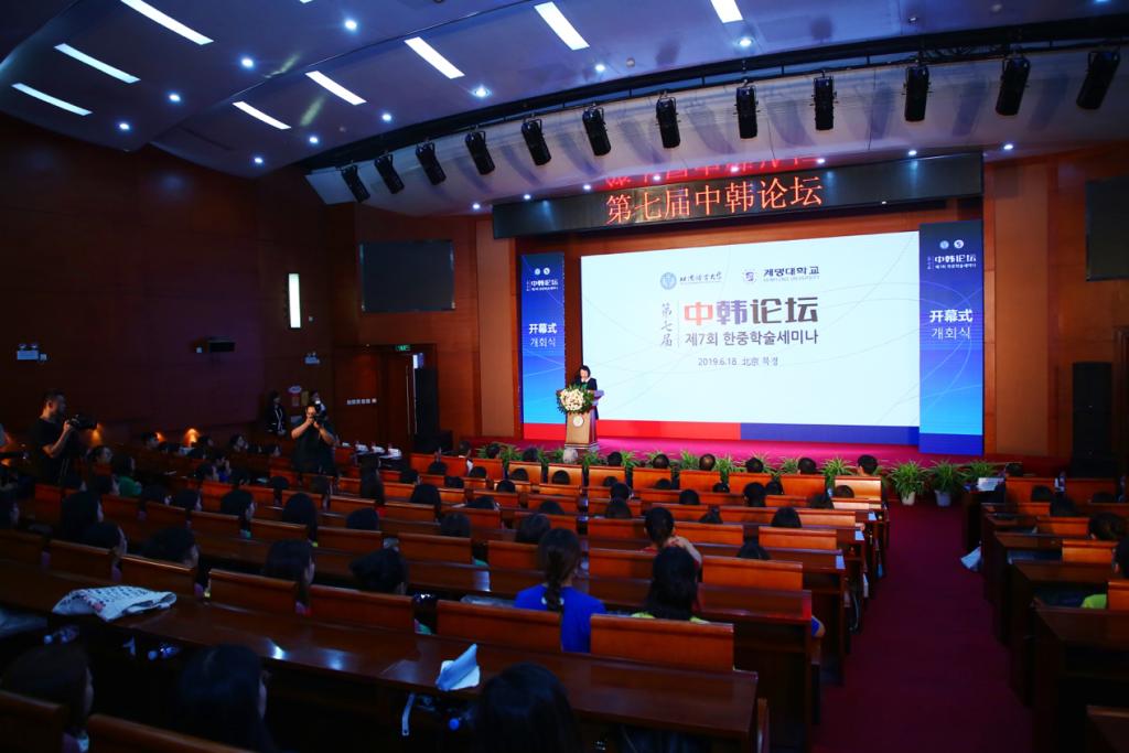 北京语言大学校长刘利在开幕式的主旨演讲中首先对韩国启明大学代表团表示热烈的欢迎。他指出,中韩两国地缘相近,人缘相亲,文缘相通,彼此有着天然的亲近感,千百年来形成了血浓于水的深厚友谊,我们有共同的文化基础、价值取向、审美标准和民族性格。回顾历史,中韩两国有着共同的历史记忆和互学互鉴的优秀传统。历史上,每当面对危难时,中韩两国人民都相濡以沫、患难相助。展望未来,中韩两国互为重要邻国和战略合作伙伴。