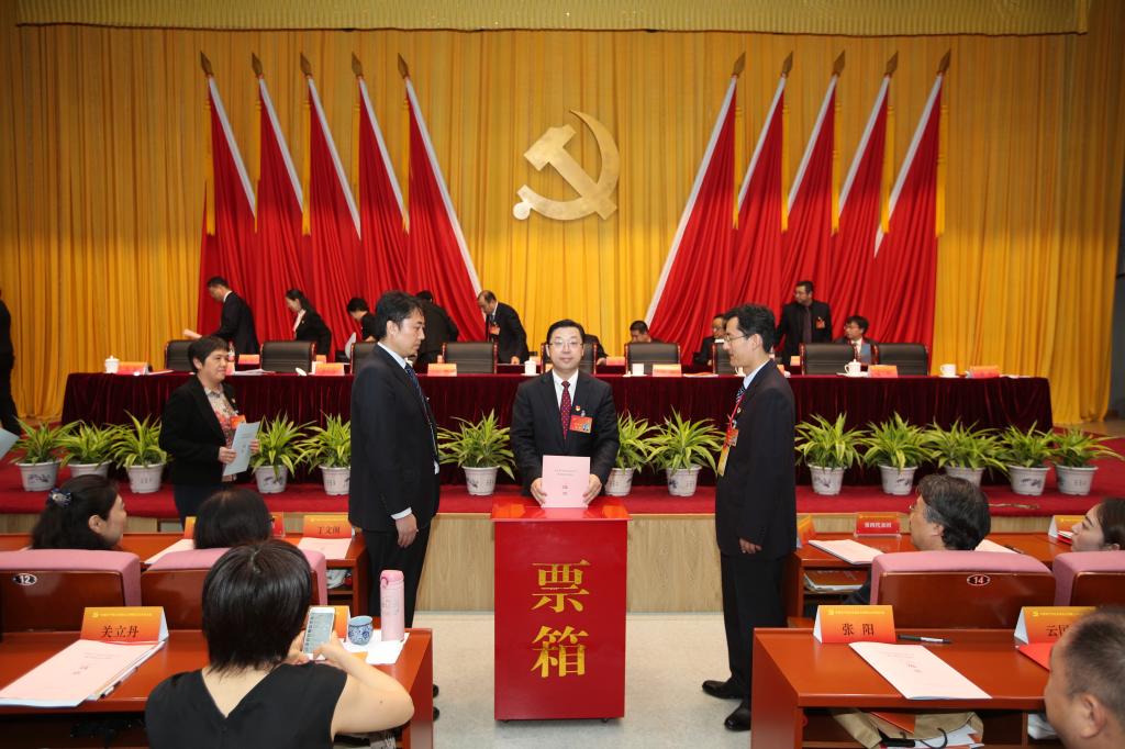 在总监票人和监票人监督下,到会代表以无记名方式,投下了庄严的一票。