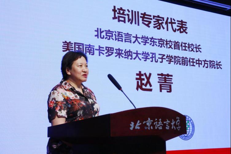 培训专家代表赵菁首先祝贺大家在炎热的酷暑中完成了课业,在北语的培训是辛苦的,未来的路也同样不平坦,她对学生们提出两点期望,一是拿出专业的精神站好讲台,展现一个中国专业教师的高素质和人格魅力;二是清醒认识当今世界的政治格局,世界风云变幻莫测。作为汉语教师志愿者,我们要运用自己的智慧展现开展民间外交的能力以寻求理解和支持。勿忘责任,任重道远;最后她祝福学员们顺利起航,平安归来。