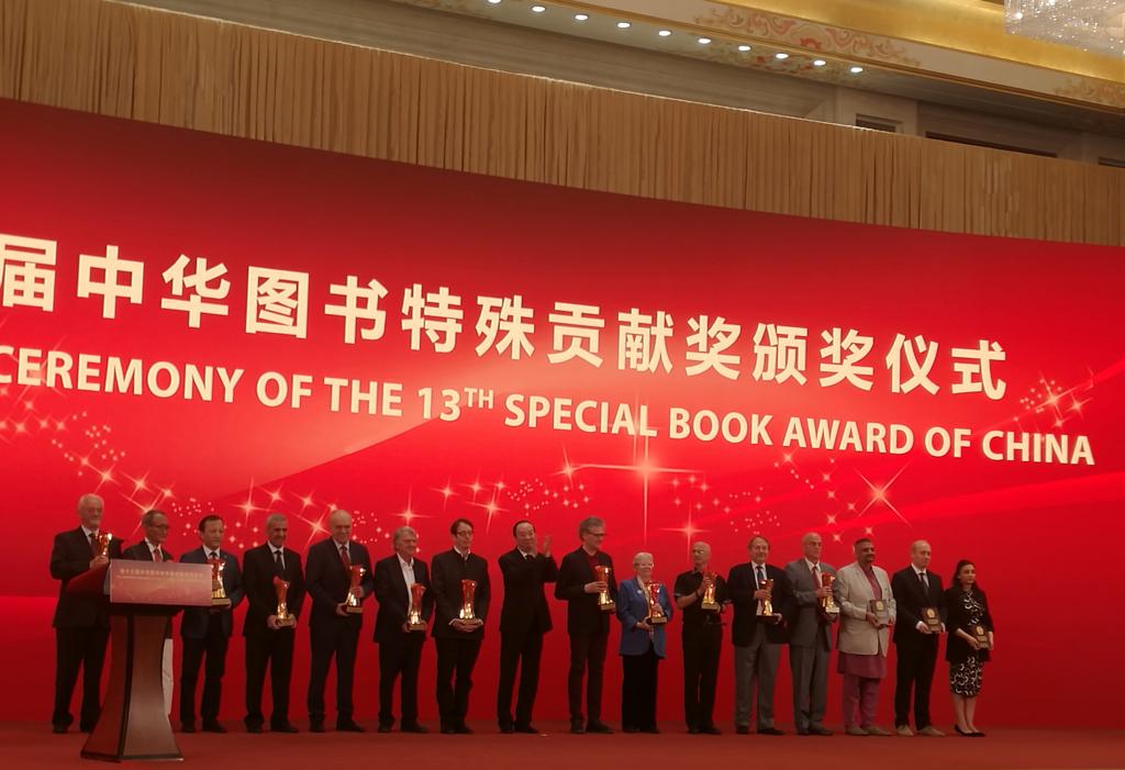作为中国出版业面向海外的最高奖项,设立于2005年的中华图书特殊贡献奖主要授予在海外介绍中国、推广中华文化和中国出版物等方面做出突出贡献的外国作家、翻译家和出版家。此前,特贡奖已成功举办十二届,共奖励英国、法国、俄罗斯、德国、美国等49个国家的123位获奖人,在国际社会产生了广泛影响。