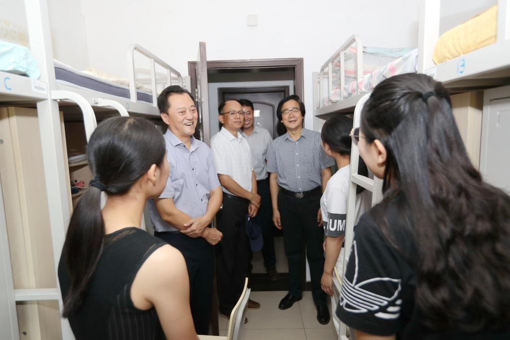 下午,党委书记倪海东,副校长张旺喜,副校长张宝钧在相关单位负责人陪同下走访了新生宿舍。校领导代表学校欢迎同学们走进北语,希望同学们积极参与各种文化体验、志愿服务、学术活动,尽快融入到“小联合国”大家庭中。