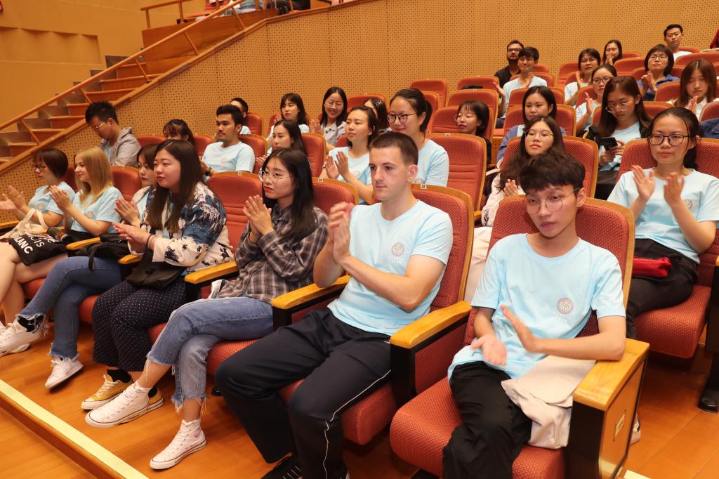 来华留学研究生代表汉语国际教育学部的黎玟廷在发言中,讲述了家族几辈人在印度尼西亚做着传播中华文化的工作,她也当上了汉语教师,而且无论在任何历史时期都坚守自己作为汉语教师的使命。她说,“我要像祖辈那样,不忘初心,通过教育树立和坚定学生们对自己文化和身份的意识。今天是我们研究生学习生涯的开始,希望在这短短的时间里,我们能够珍惜每一刻,在这国际化的校园里开阔视野,与良师益友共同进步共同发展。”