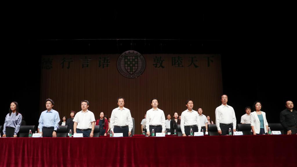9月11日下午,北京语言大学2019级研究生新生开学典礼在北语礼堂举行。“小联合国”敞开怀抱,迎接来自祖国和世界各地的1008名中外研究生同学,共襄盛举。党委书记倪海东、校长刘利、副书记马贵生、副校长张旺喜、副校长张宝钧、副校长黄益方出席典礼。各学部院系和职能部门的负责人以及教师代表出席典礼。校长助理、研究生院院长郭鹏主持典礼。