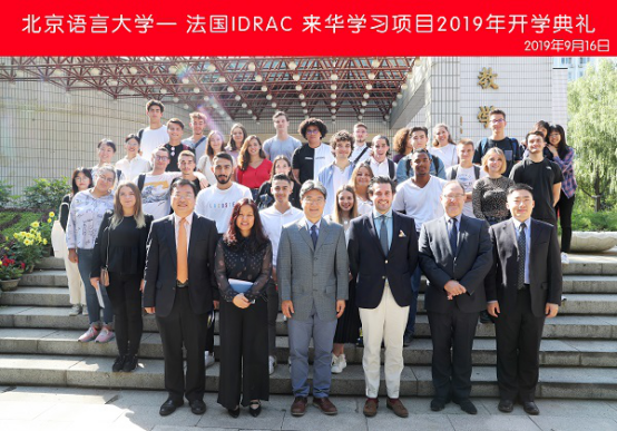 9月16日上午,北京语言大学与法国IDRAC商学院合作举办的首届商学院“来华学习项目”开学典礼在逸夫报告厅举行。副校长张宝钧教授、商学院副院长宋晓玲教授、国际学生招生处副处长周鑫,法国IDRAC商学院校区副校长Romain BICHERON,蒙彼利埃校区校长Guillaume LADET,IDRAC商学院的29位法国留学生出席了此次开学典礼,商学院副院长祁大伟副教授主持了此次典礼。