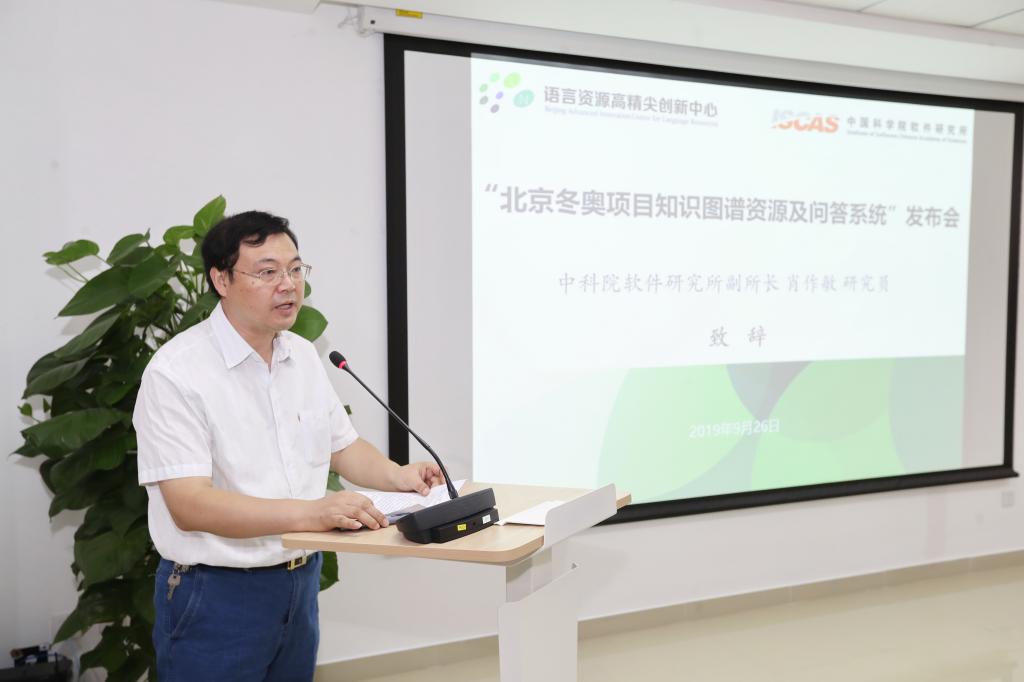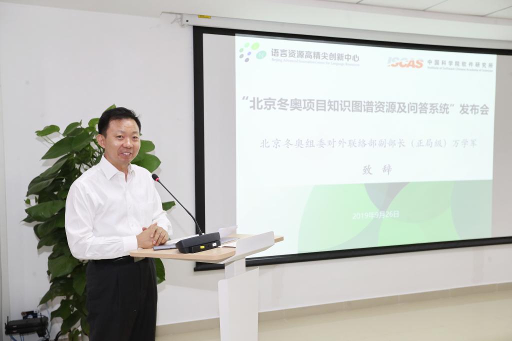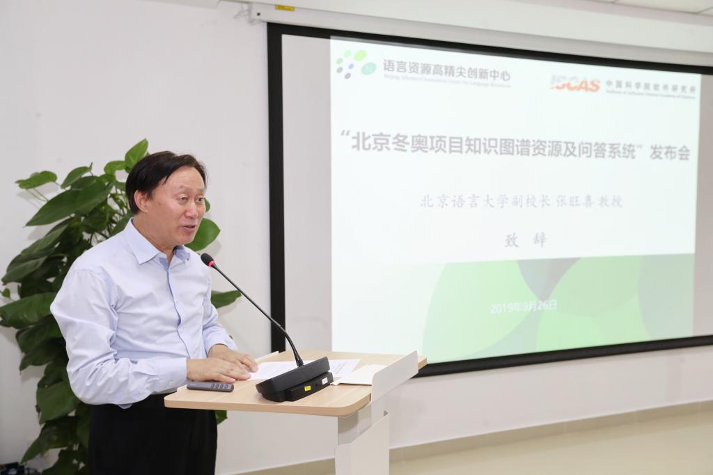 9月26日上午,“北京冬奥项目知识图谱资源及问答系统”发布会在北京语言大学举行。北京冬奥组委对外联络部副部长万学军、教育部语信司副司长刘宏、北京语言大学副校长张旺喜、中科院软件研究所副所长肖作敏、北京冬奥组委延庆运行中心副主任张双锁等领导及专家出席发布会。语言资源高精尖创新中心(以下简称“中心”)常务副主任杨尔弘教授主持发布会。