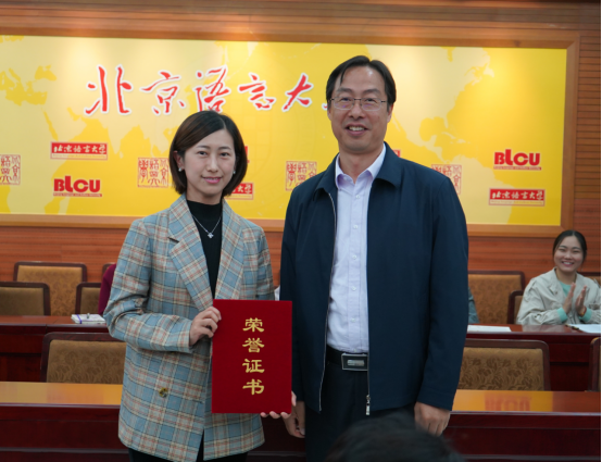 会议最后举行了本校优秀辅导员颁奖仪式。黄益方副校长为获得教育部“第十一届高校辅导员年度人物入围奖”的外国语学部辅导员王丽媛老师颁发证书,学生处处长黄展老师为获得“2018-2019年度校级优秀辅导员”称号的人文社会科学学部辅导员玄铮老师,信息科学学院徐亦沛老师以及外国语学部王丽媛老师颁奖,祝贺三位获奖的辅导员老师,并鼓励全体学生工作队伍在新的学期继续再创佳绩。