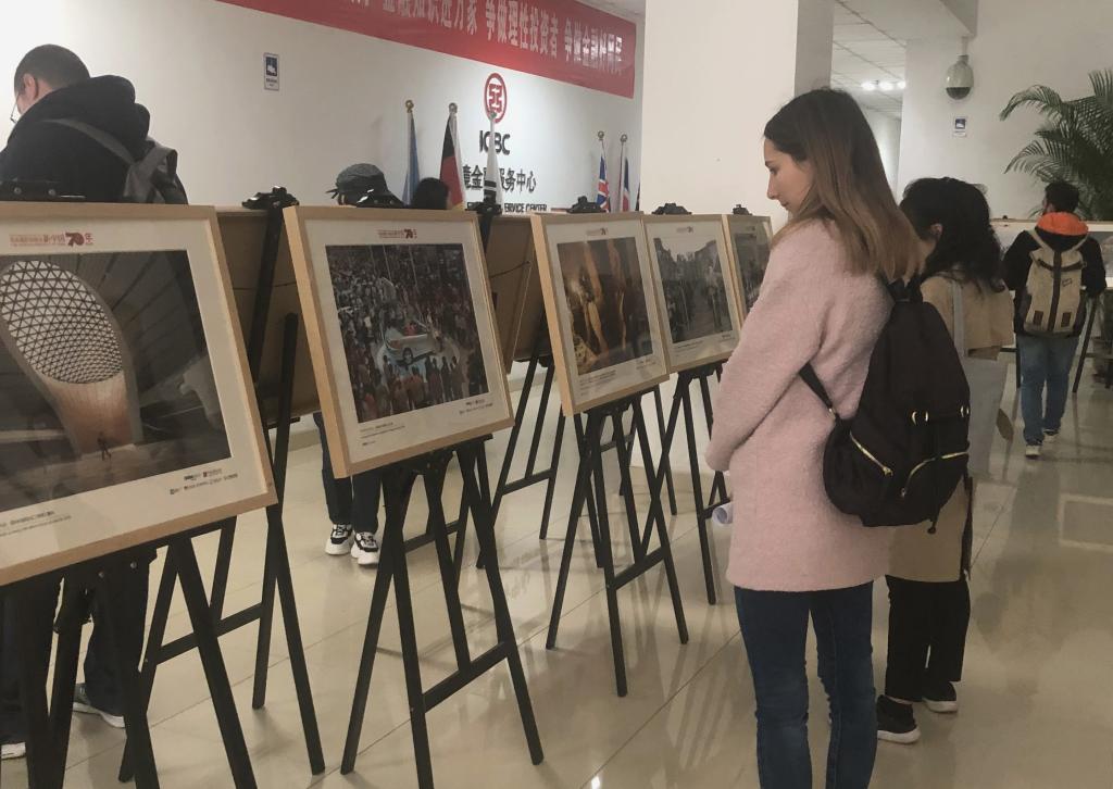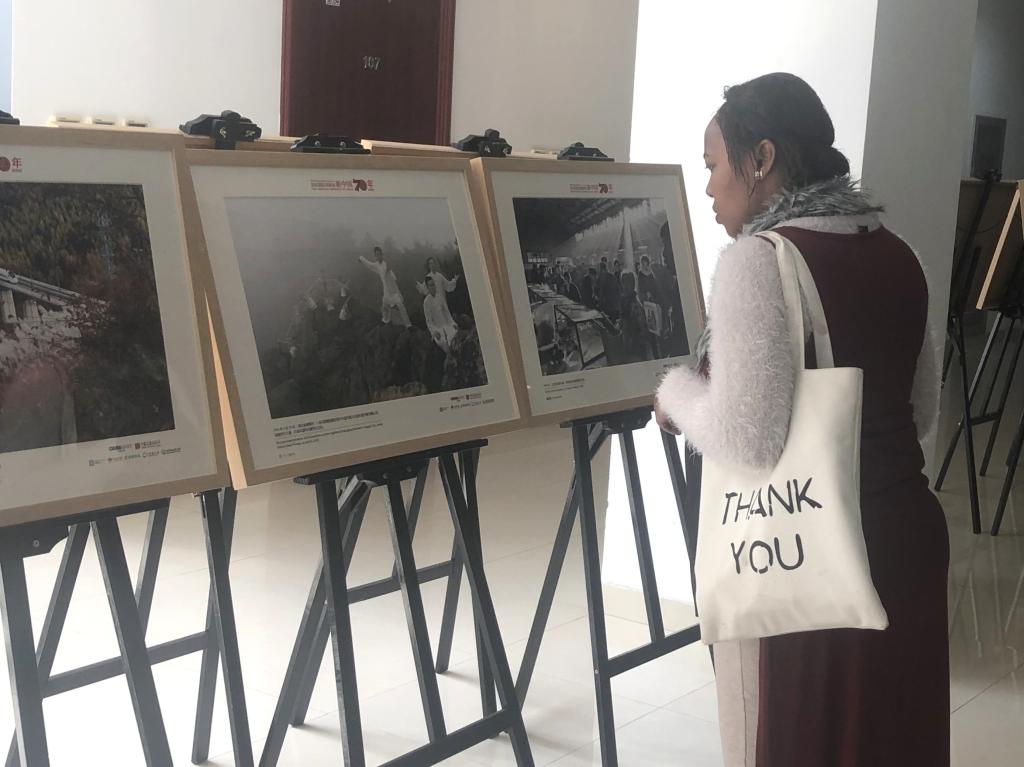 布展当日,作品就吸引了我校众多中外师生驻足欣赏。新中国从“站起来”,到“富起来”,到“强起来”,写就了一部波澜壮阔的复兴史诗,也留下了数不清的感人故事。一帧帧珍贵图片撞击着师生的心灵,升华着师生的爱国情感,也为留学生提供了了解新中国历史变迁的鲜活教材。