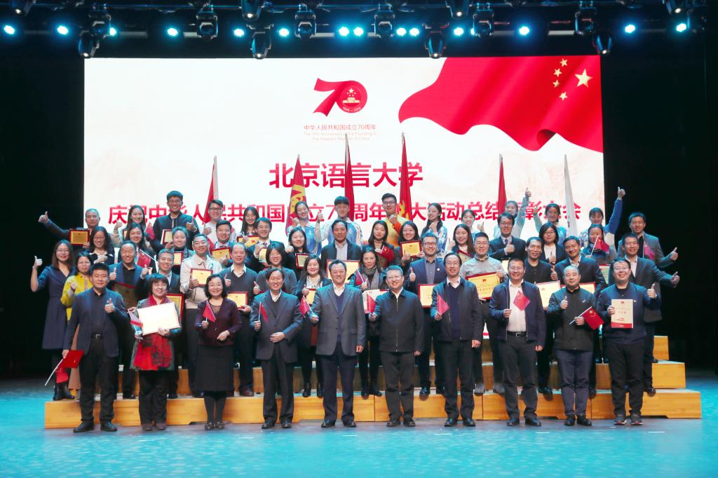 北京语言大学庆祝中华人民共和国成立70周年重大活动总结表彰大会在大家齐唱《我和我的祖国》的歌声中圆满落幕。壮丽七十年,献礼共和国。此次表彰大会极大地鼓舞了北语师生的爱国热情,激励着参与过、目睹过国庆70周年活动的广大北语师生,也砥砺着所有的北语人在今后学习工作中继续与祖国同行,为祖国的盛事繁华而不懈奋斗。
