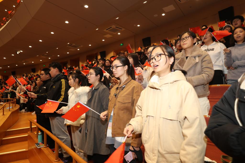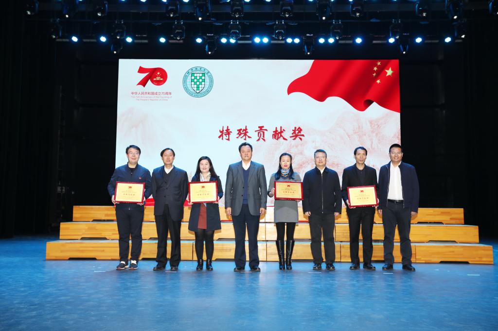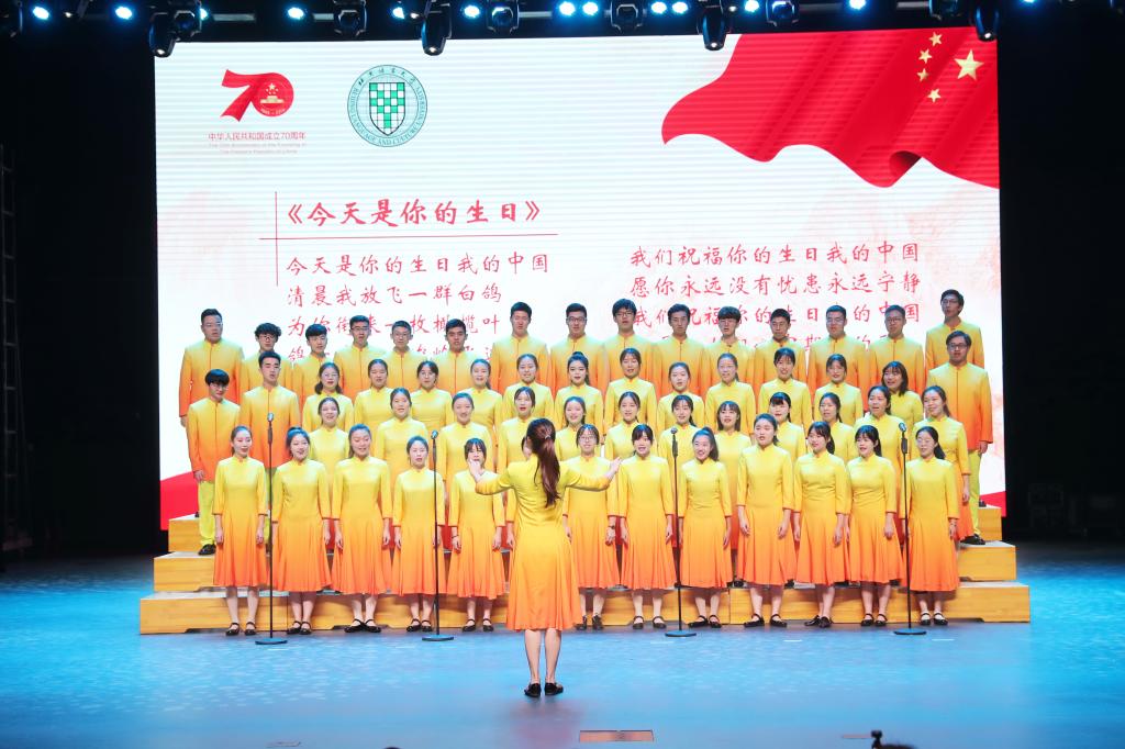 表彰大会在广场合唱团悠扬的歌声中拉开了帷幕,合唱团同学们演唱了《今天是你的生日》《不忘初心》,将师生们的思绪带回到了10月1日的天安门广场。