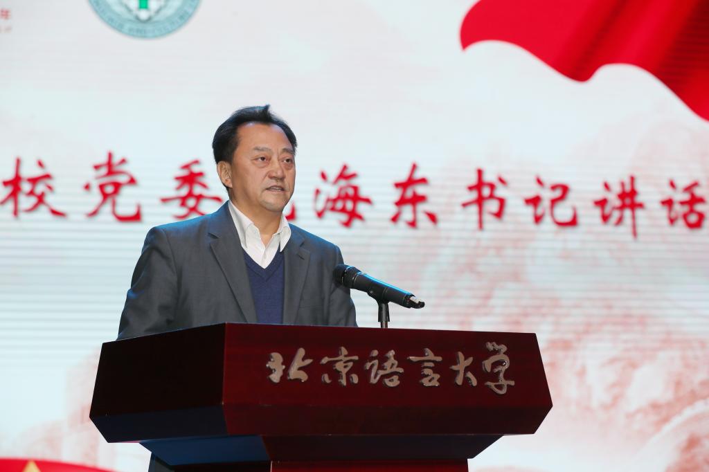 倪海东书记发表重要讲话,向所有参与国庆70周年服务保障工作的师生致以崇高的敬意,并表达诚挚的谢意。他指出,我校能够圆满完成此次意义重大的国庆任务,关键在于北语人有着坚定的爱国情怀与理想信念,在于校内师生团结一致、细致部署、密切配合。倪海东书记提出四点期望:一是认真学习贯彻习近平总书记国庆系列重要讲话,进一步凝聚爱国主义的磅礴力量;二是系统总结活动中形成的经验做法,持续推动爱国主义教育落细落实;三是扎实总结国庆活动成果,全力投入中国特色世界一流语言大学建设;四是号召全校师生担负起时代所赋予的神圣责任,共同擦亮北语这块金字招牌,在建设中国特色世界一流语言大学的道路上不断奋勇前行,在实现“两个一百年”奋斗目标和中华民族伟大复兴中国梦的征程中努力谱写人生绚丽华章。